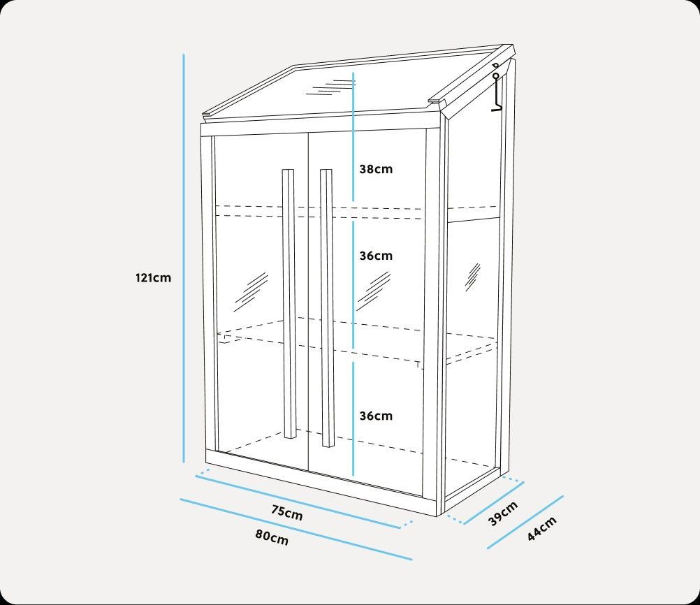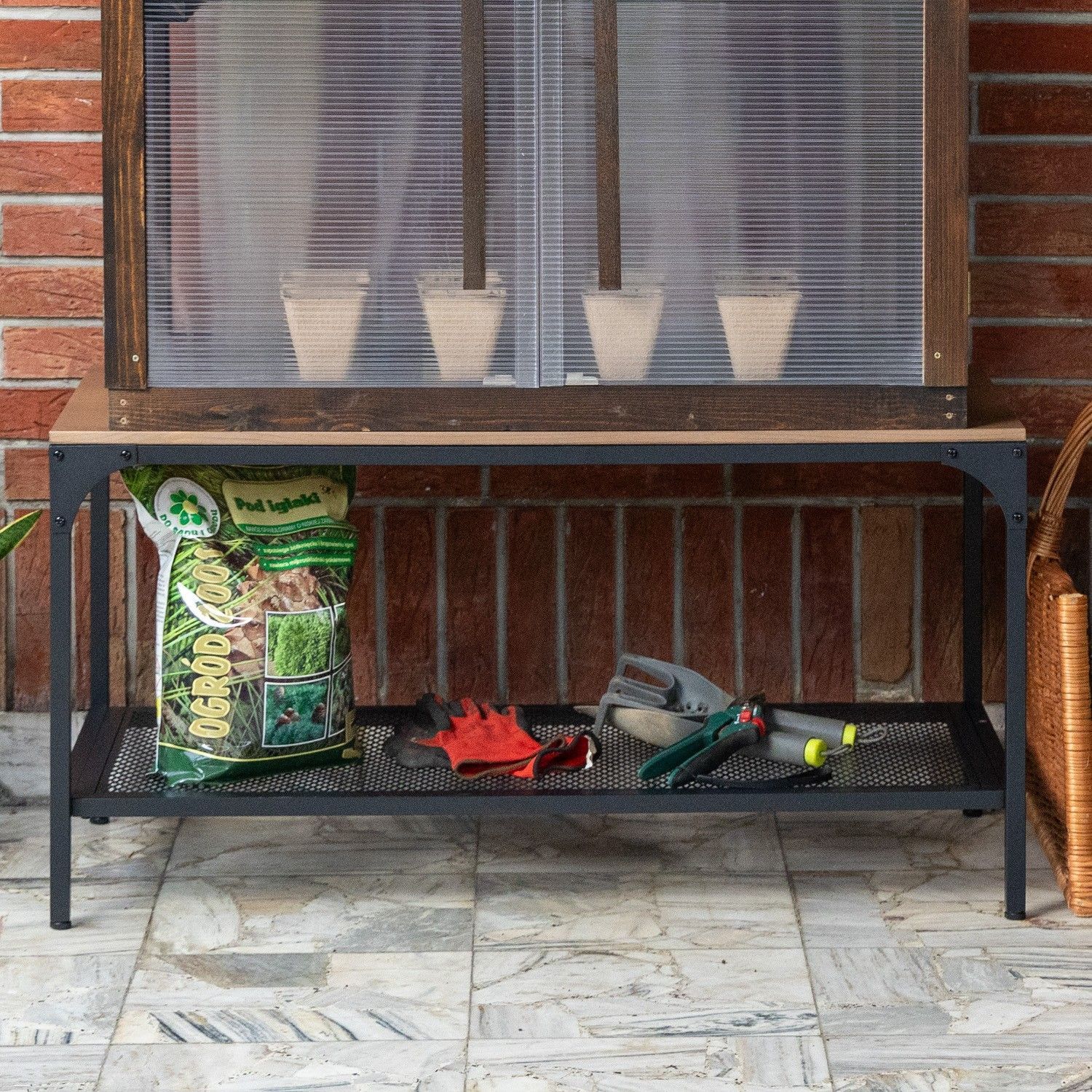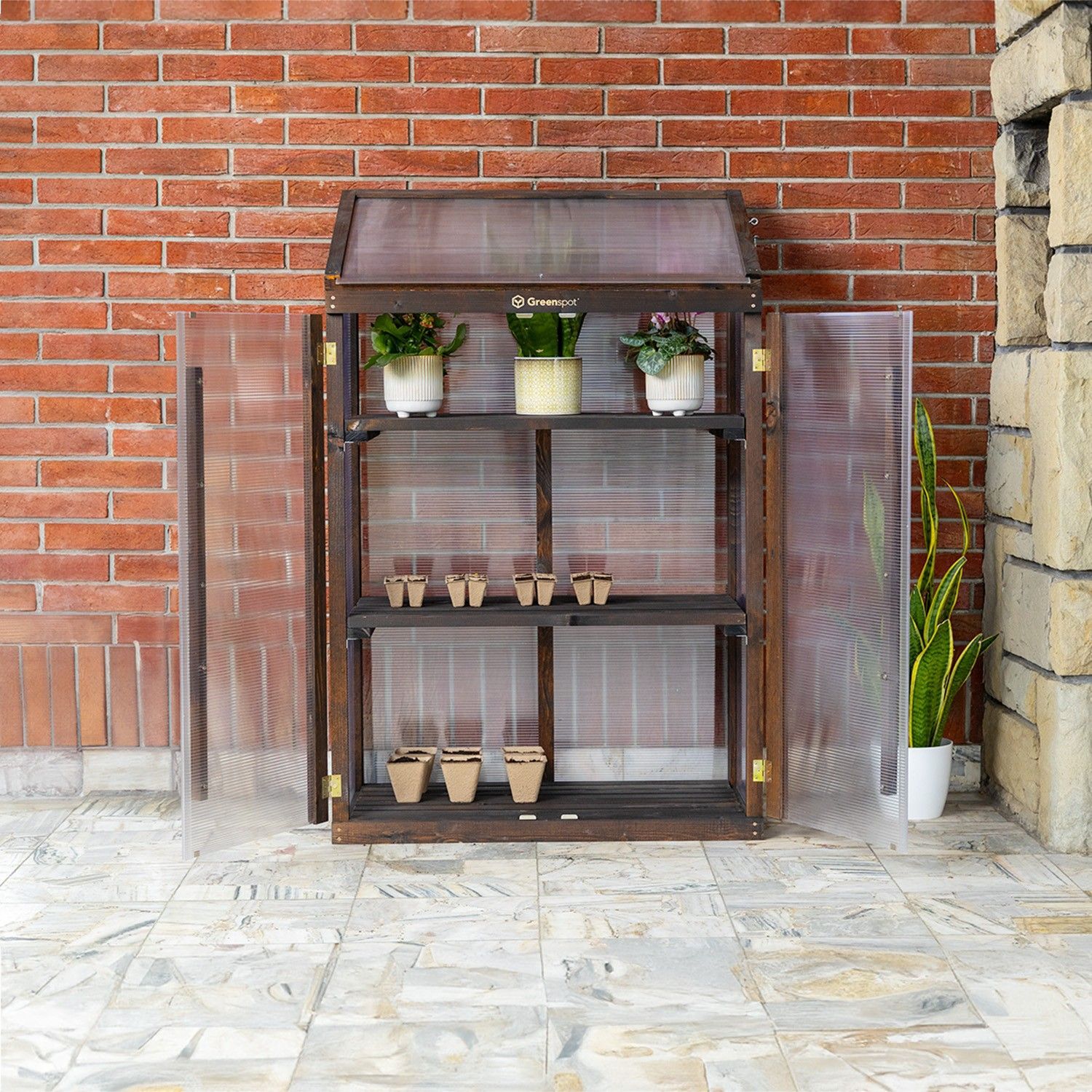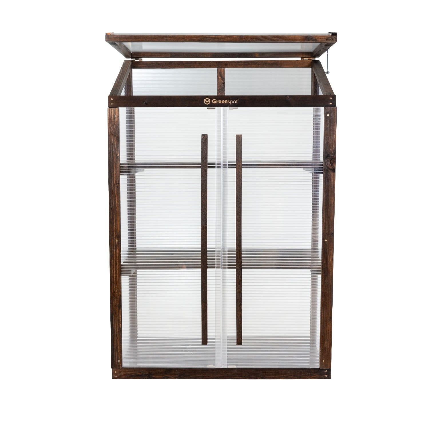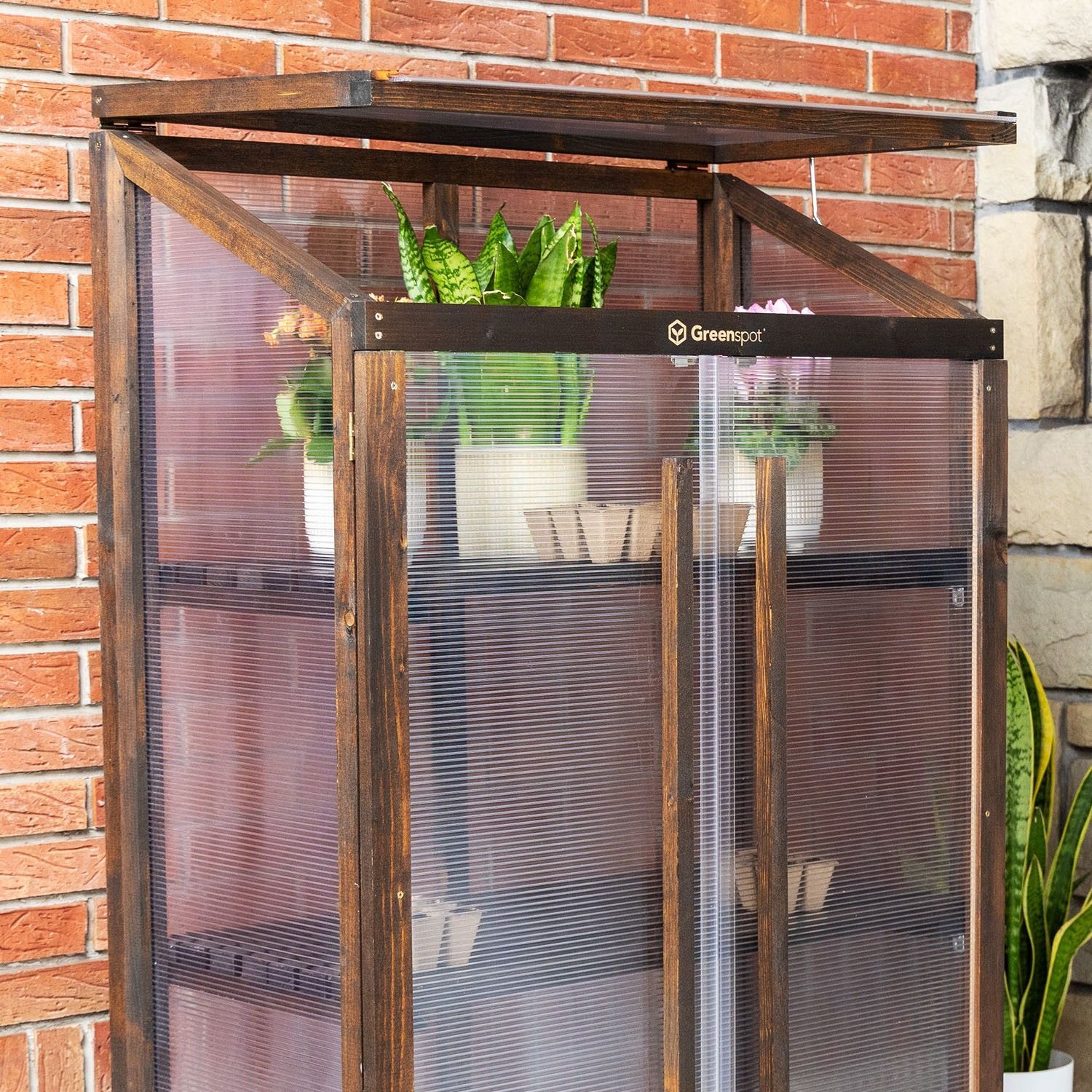 QLS QLS Mini Gewächshaus für Balkon Holz & Polycarbonat 80x42x121 cm dunkel 11264