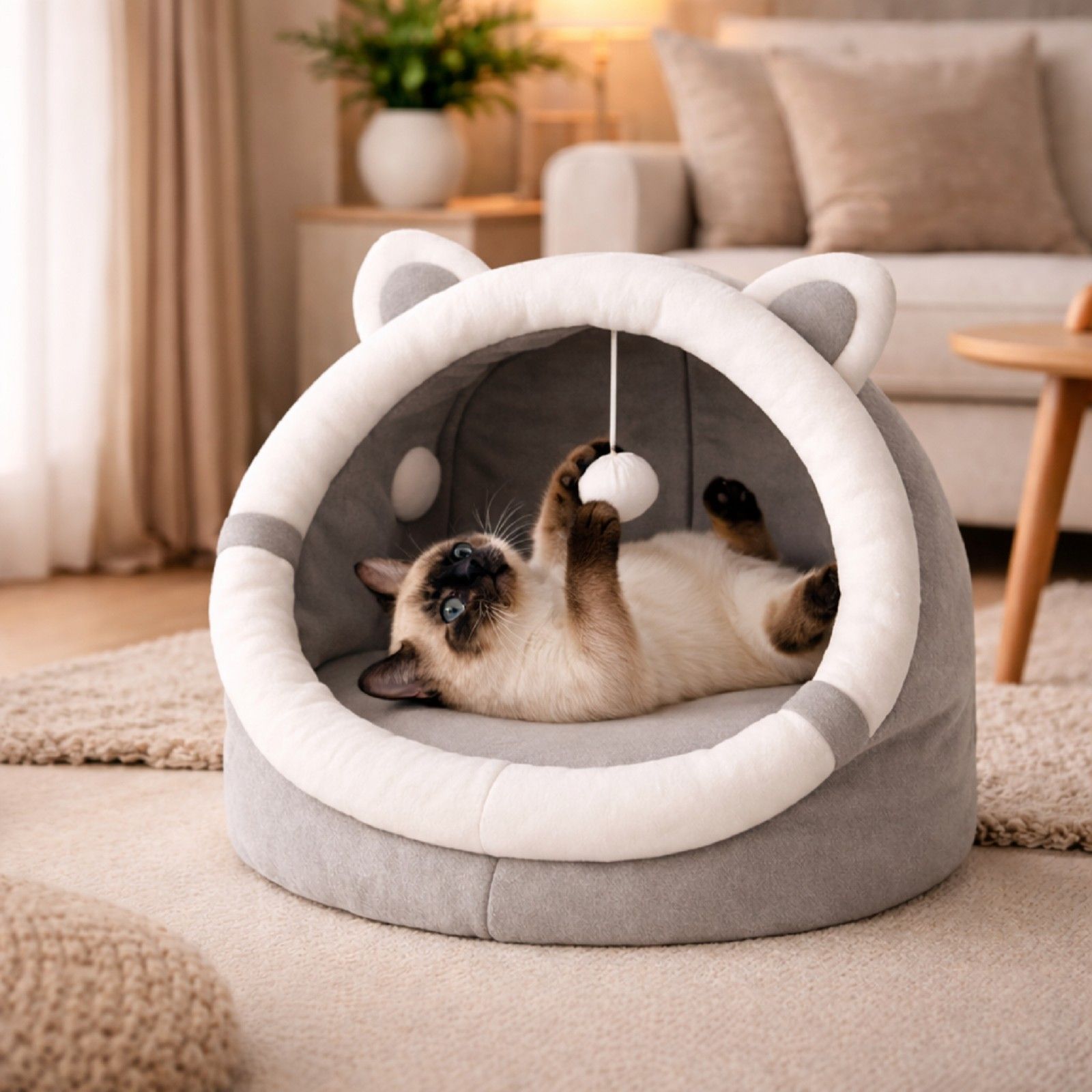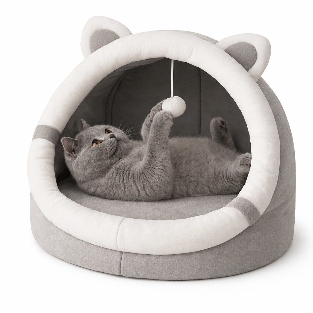 QLS QLS Plüsch Katzenhaus mit Kissen 31x30x28cm - warmes weiches Katzenbett Indoor 11416