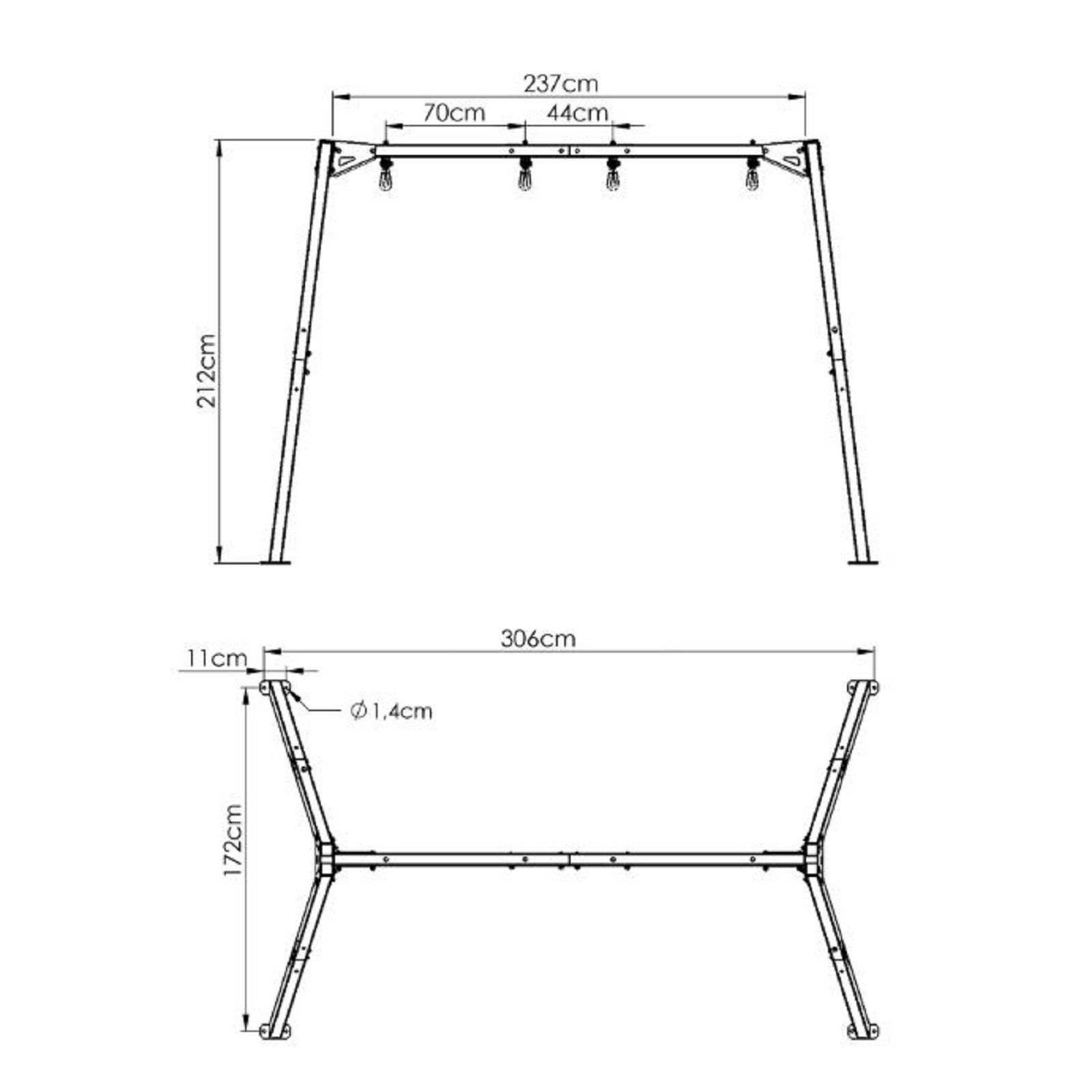 • QLS Schaukelgestell für Hollywoodschaukel A-Form aus Stahl mit 4 Aufhängehaken 11282