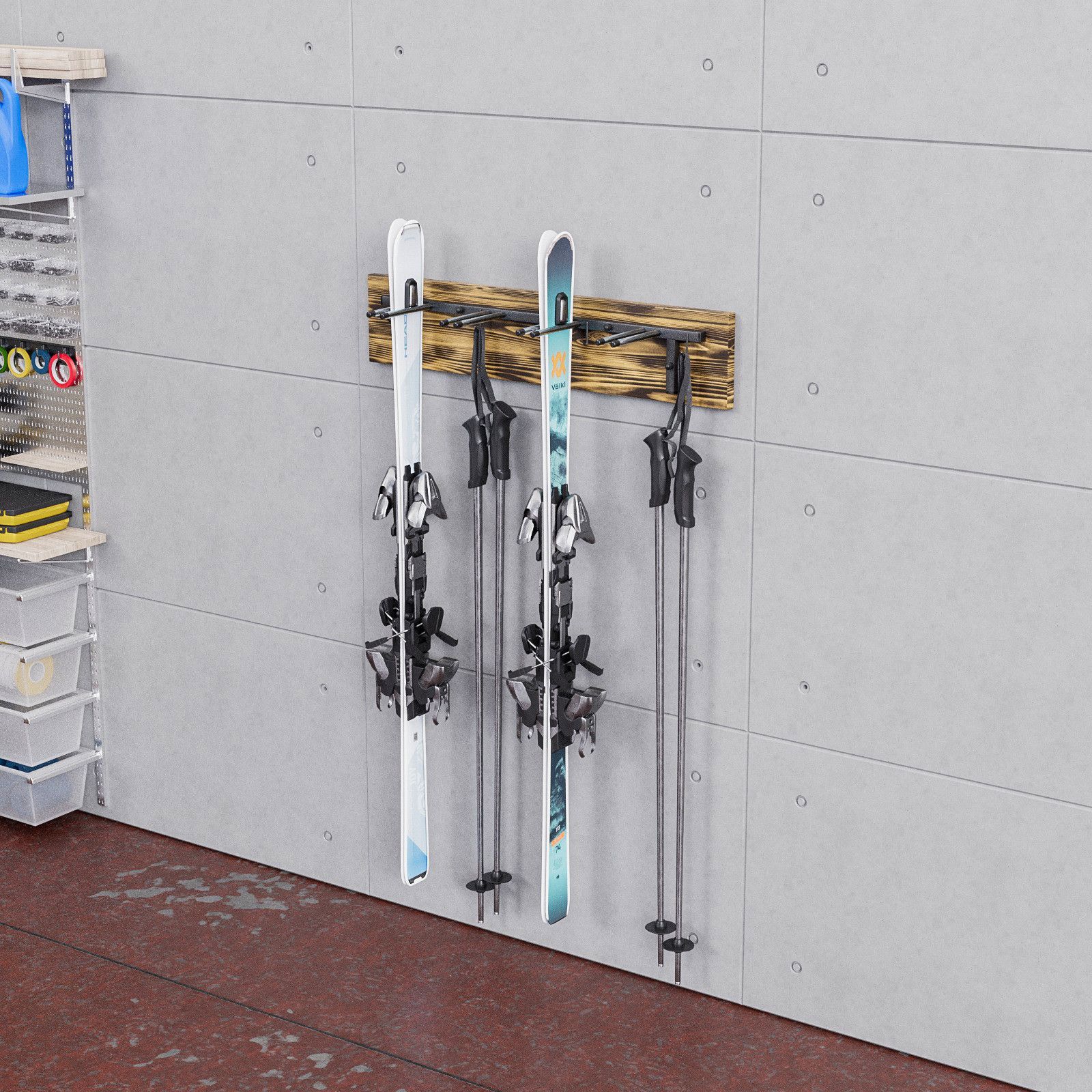 QLS QLS Skihalterung S3 Wand Skihalter für 4 Paare 83 cm Stahl Holz Hakenleiste 9987