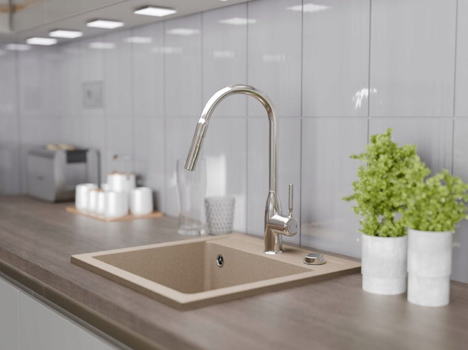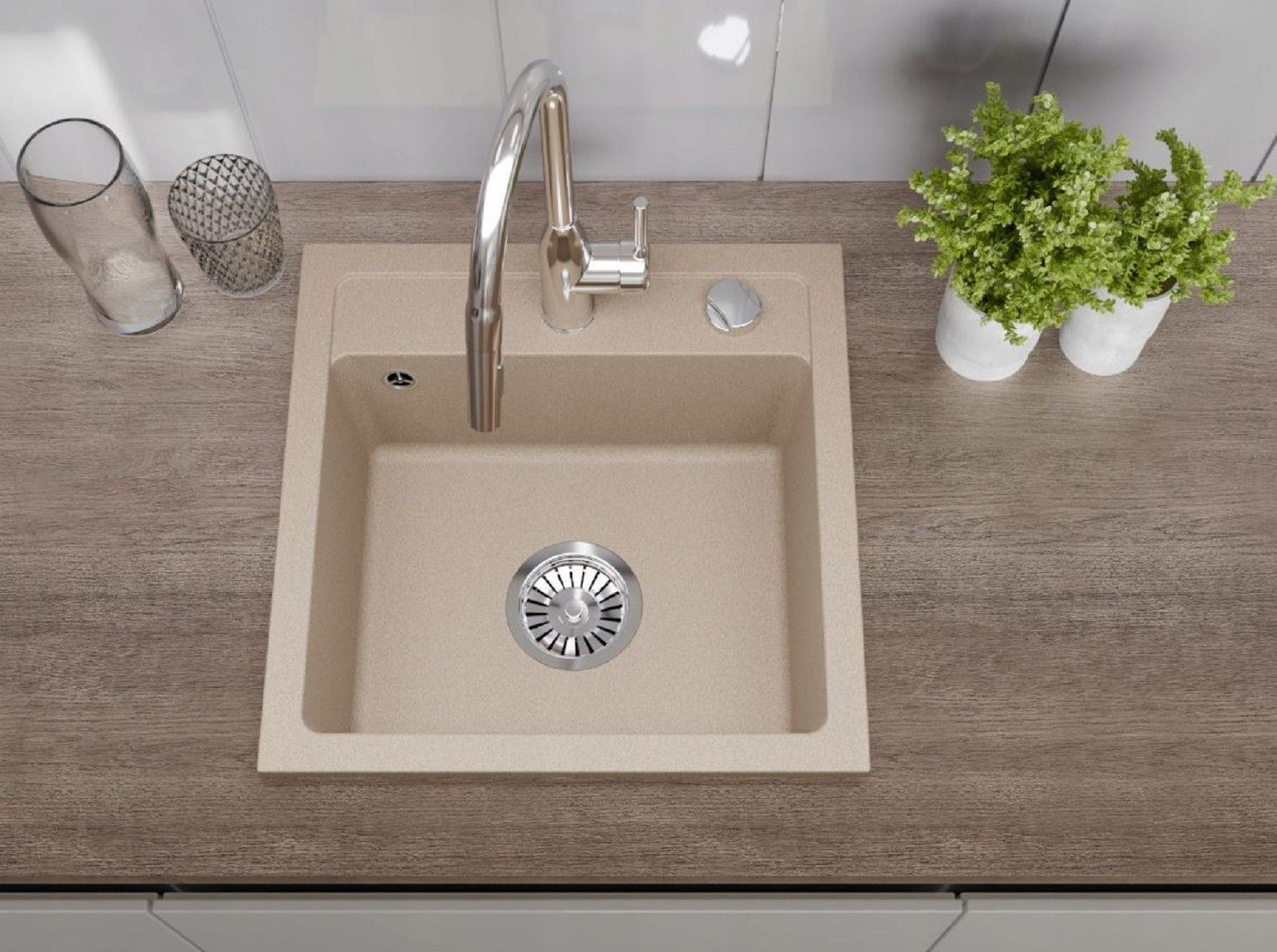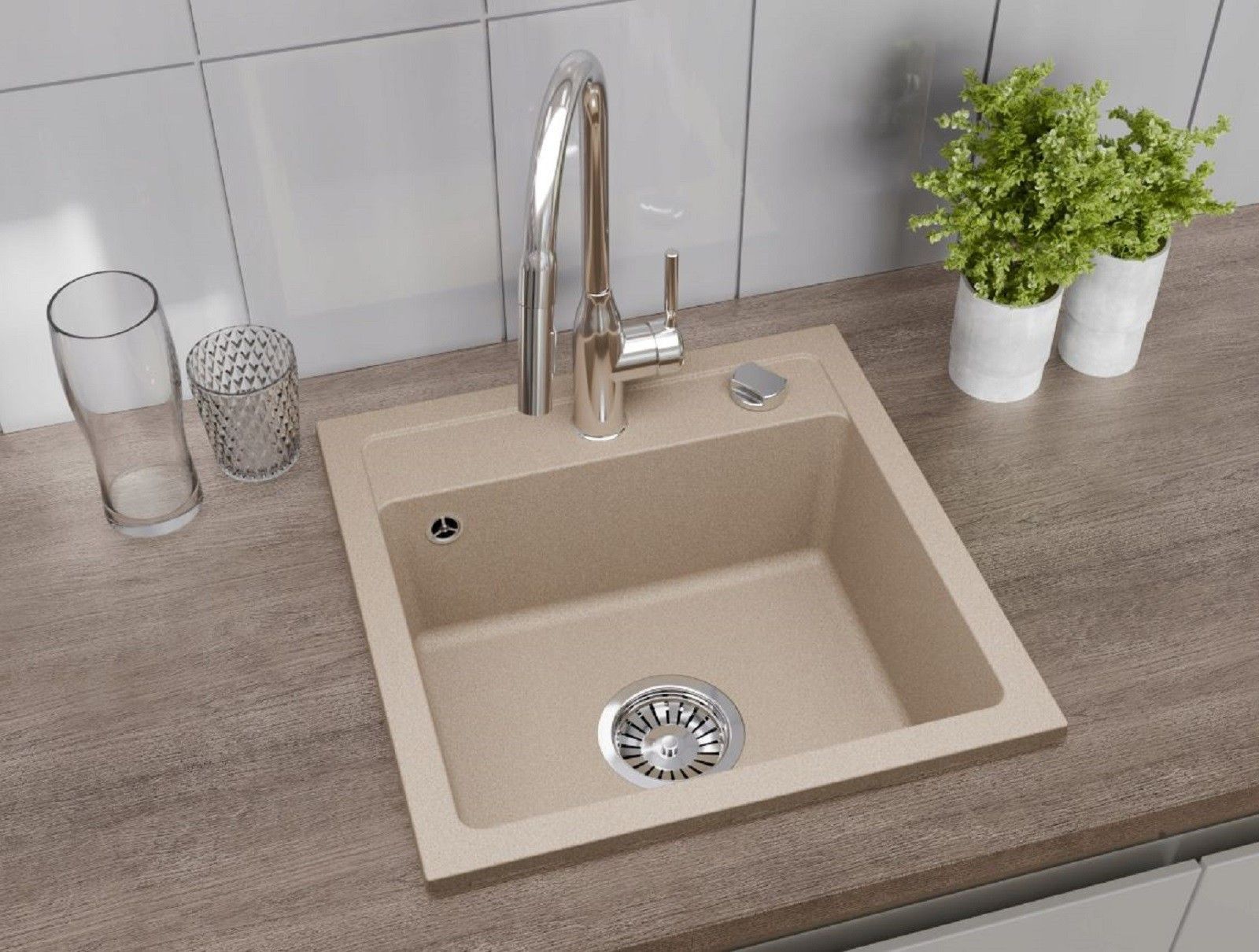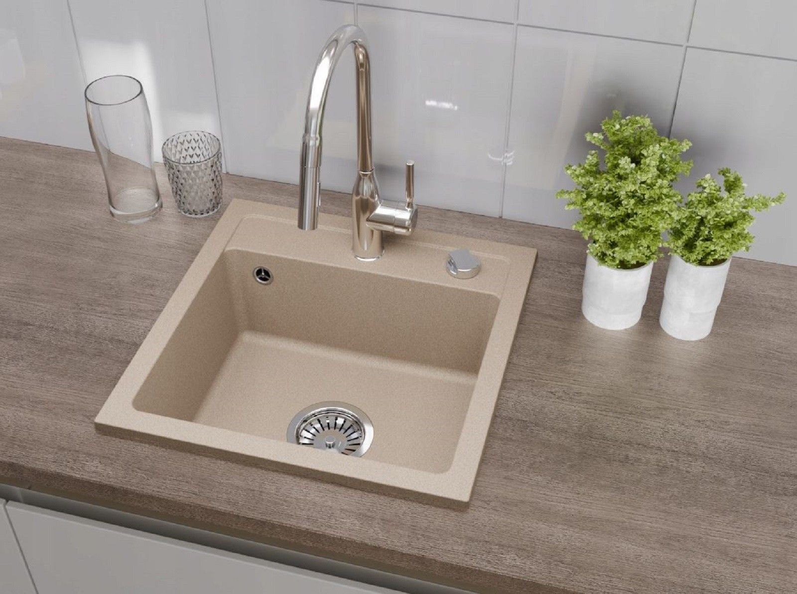 QLS QLS Spülbecken 44x44 cm Granit mit automatischem Siphon Bella Beige 1-Becken 11182