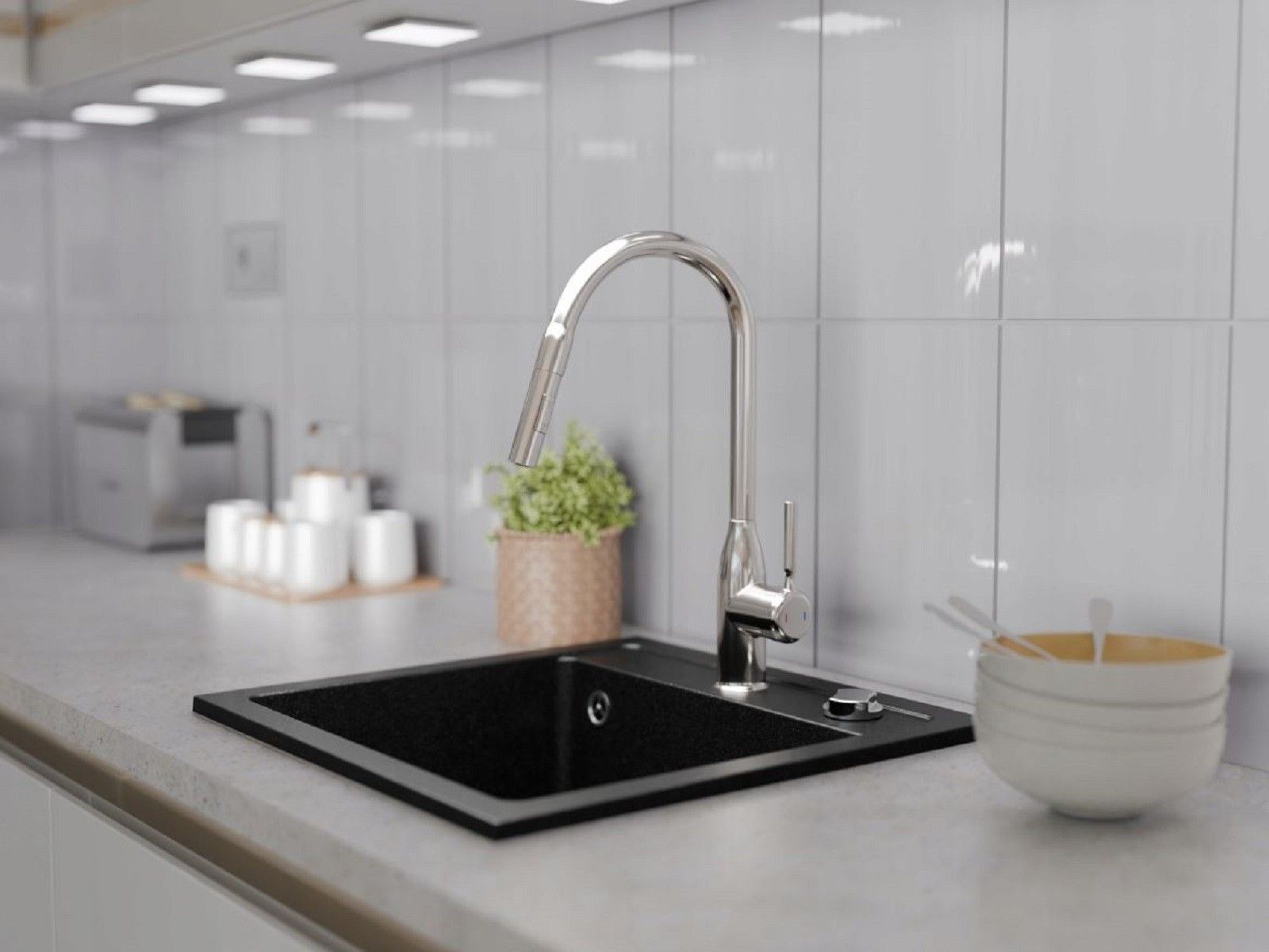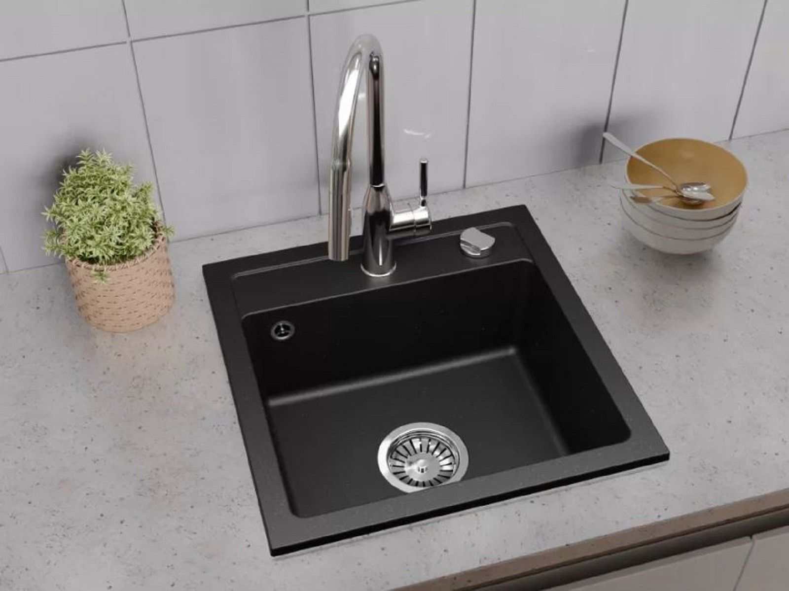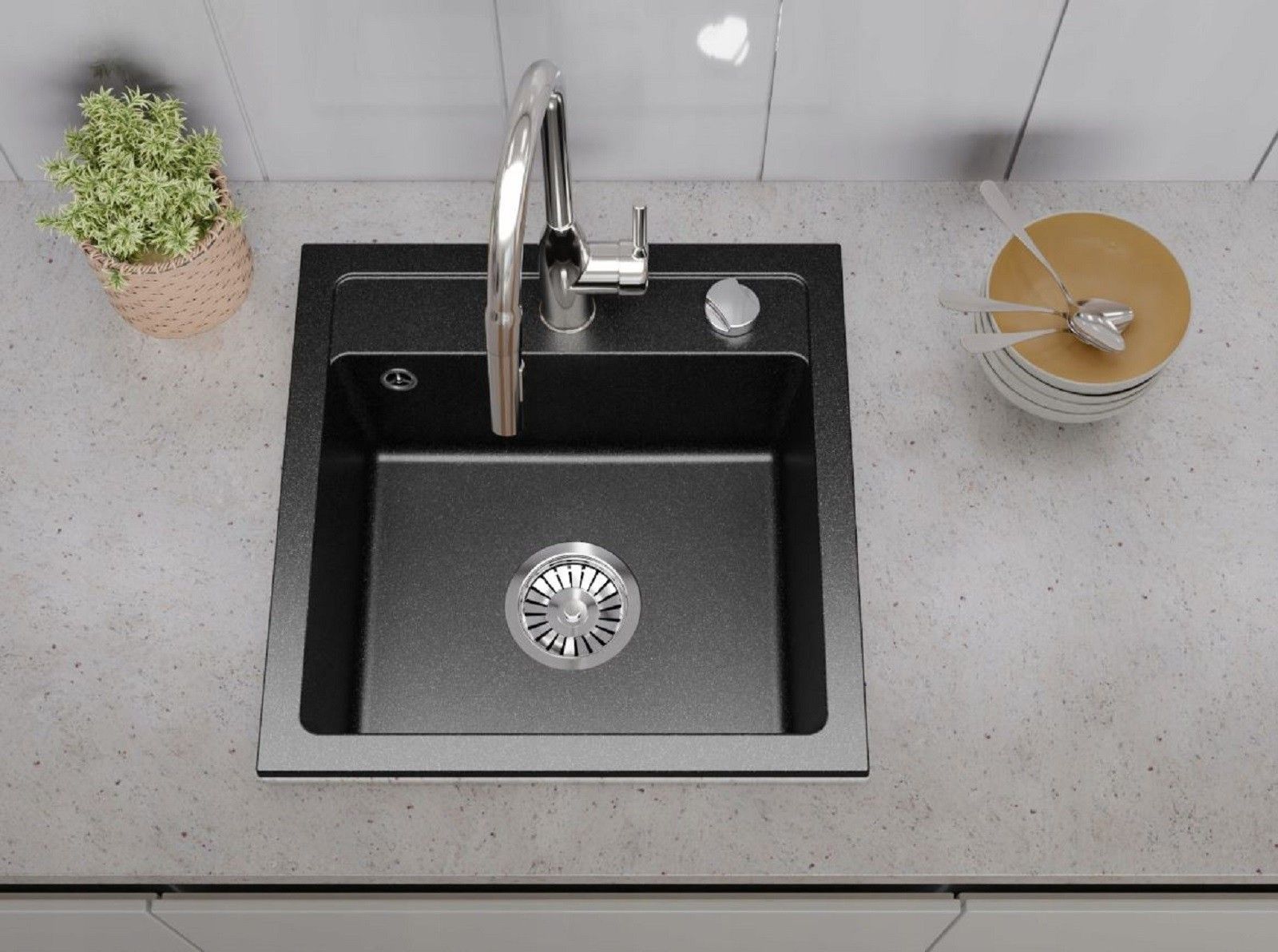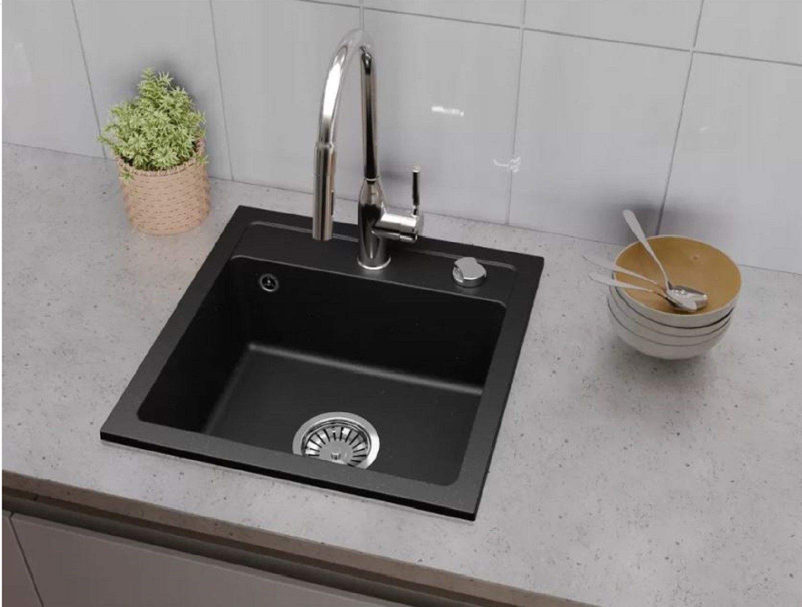 QLS QLS Spülbecken 44x44 cm Granit mit automatischem Siphon Bella Schwarz 1-Becken 11180