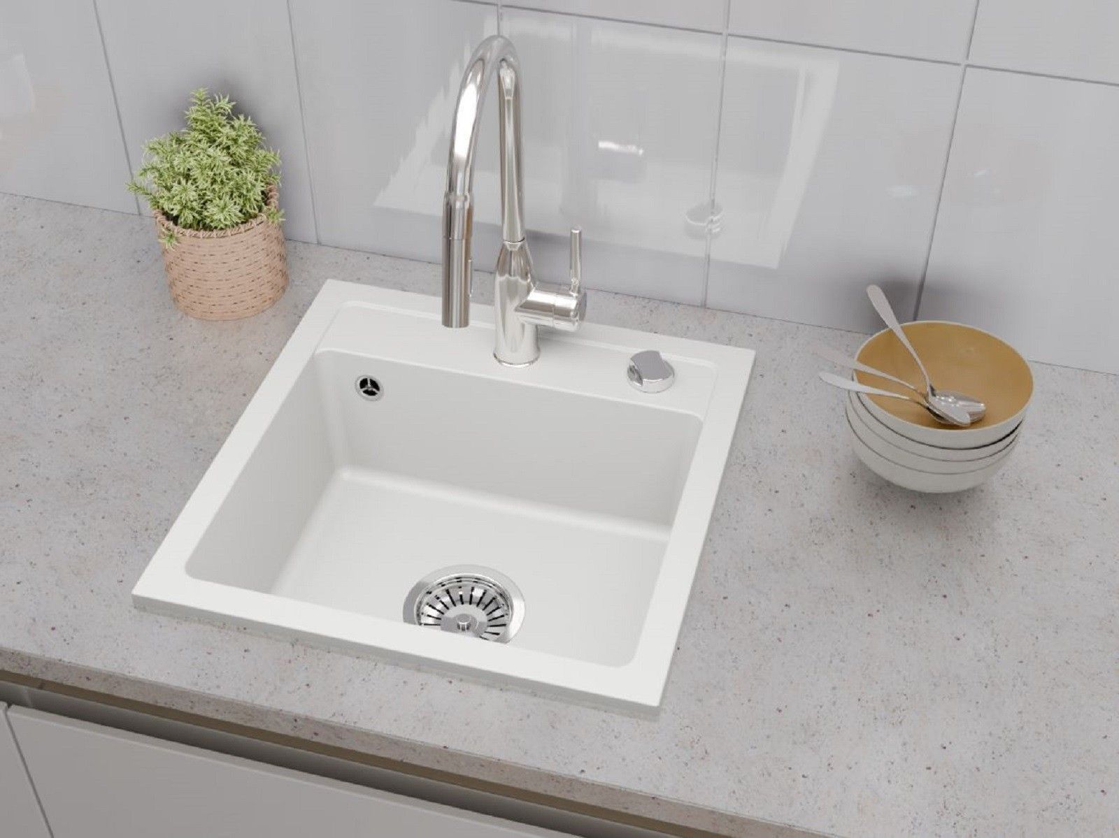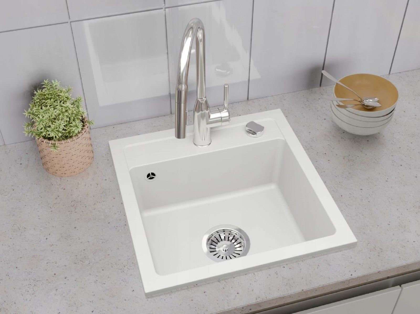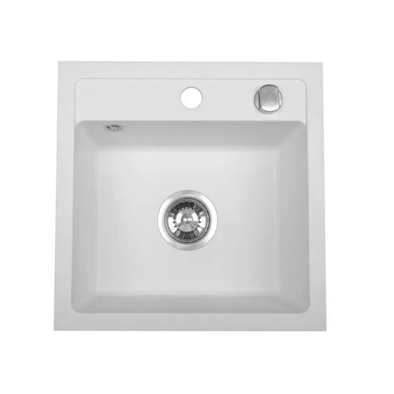 QLS QLS Spülbecken 44x44 cm Granit mit automatischem Siphon Bella Weiß 1-Becken 11181