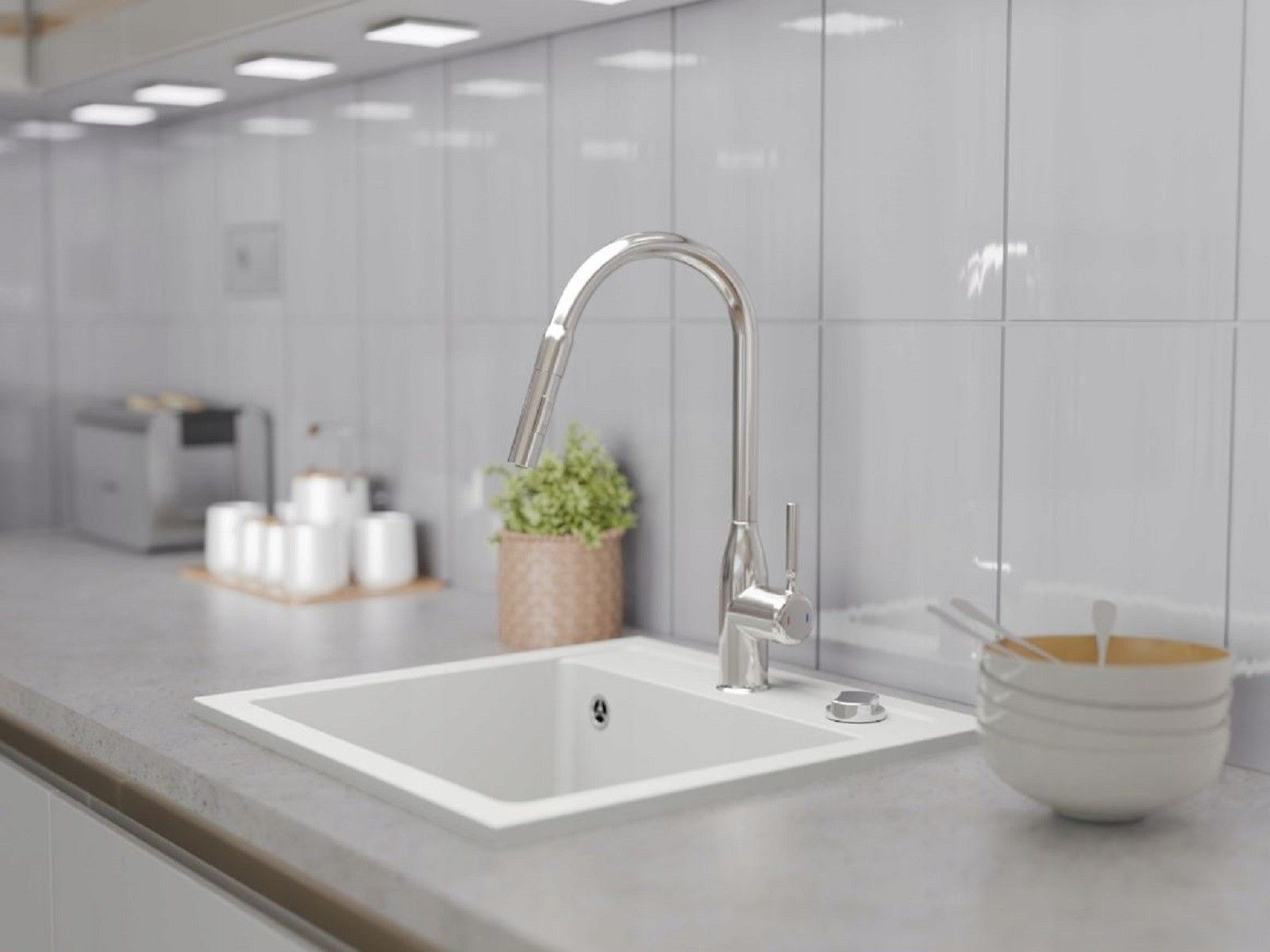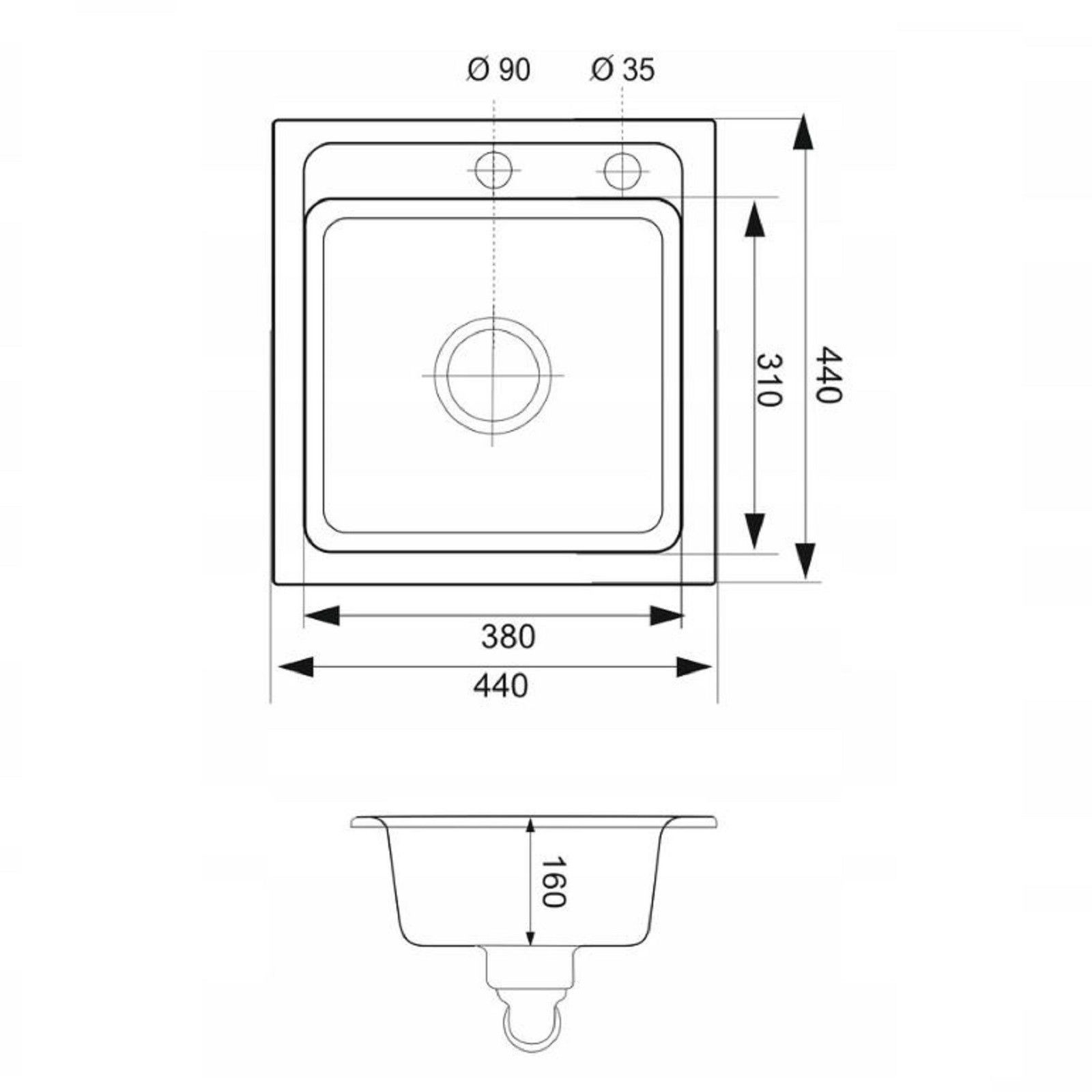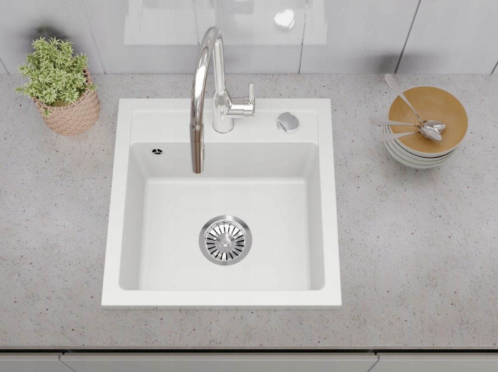 QLS QLS Spülbecken 44x44 cm Granit mit automatischem Siphon Bella Weiß 1-Becken 11181