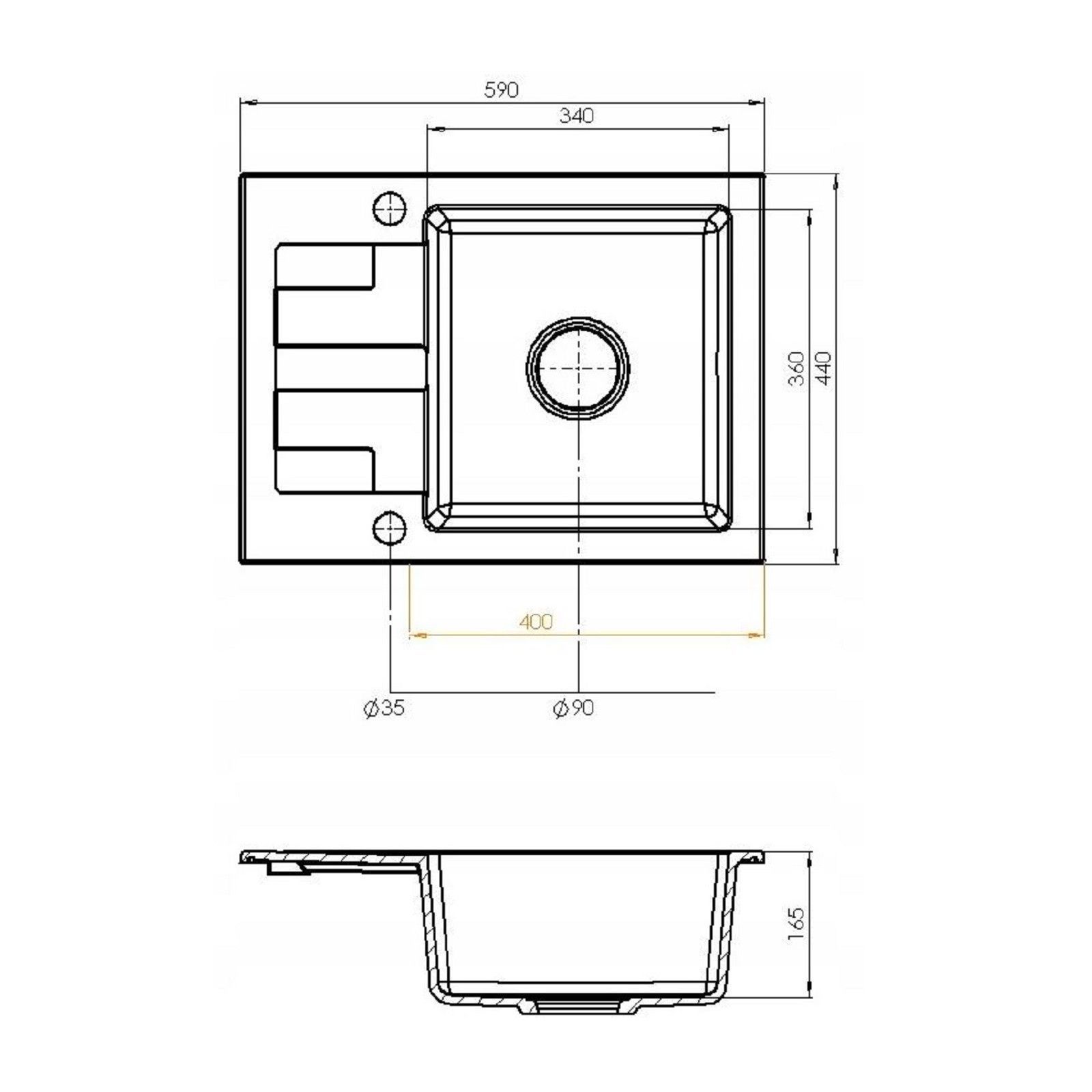 QLS QLS Spülbecken 59x44 cm mit Abtropffläche Siphon Reversibel - Neli Beige 11192