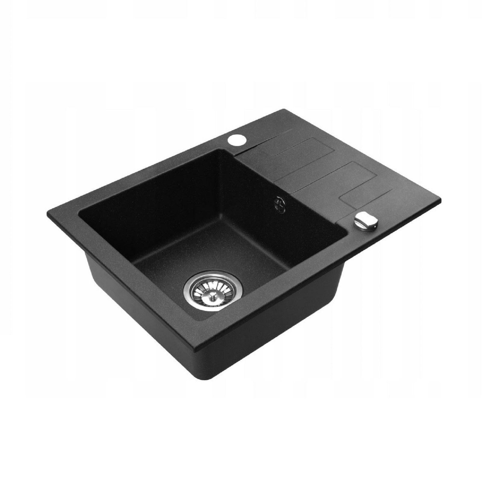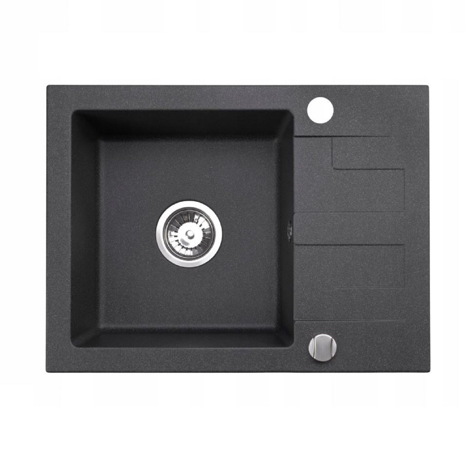 QLS QLS Spülbecken 59x44 cm mit Abtropffläche Siphon Reversibel - Neli Schwarz 11190