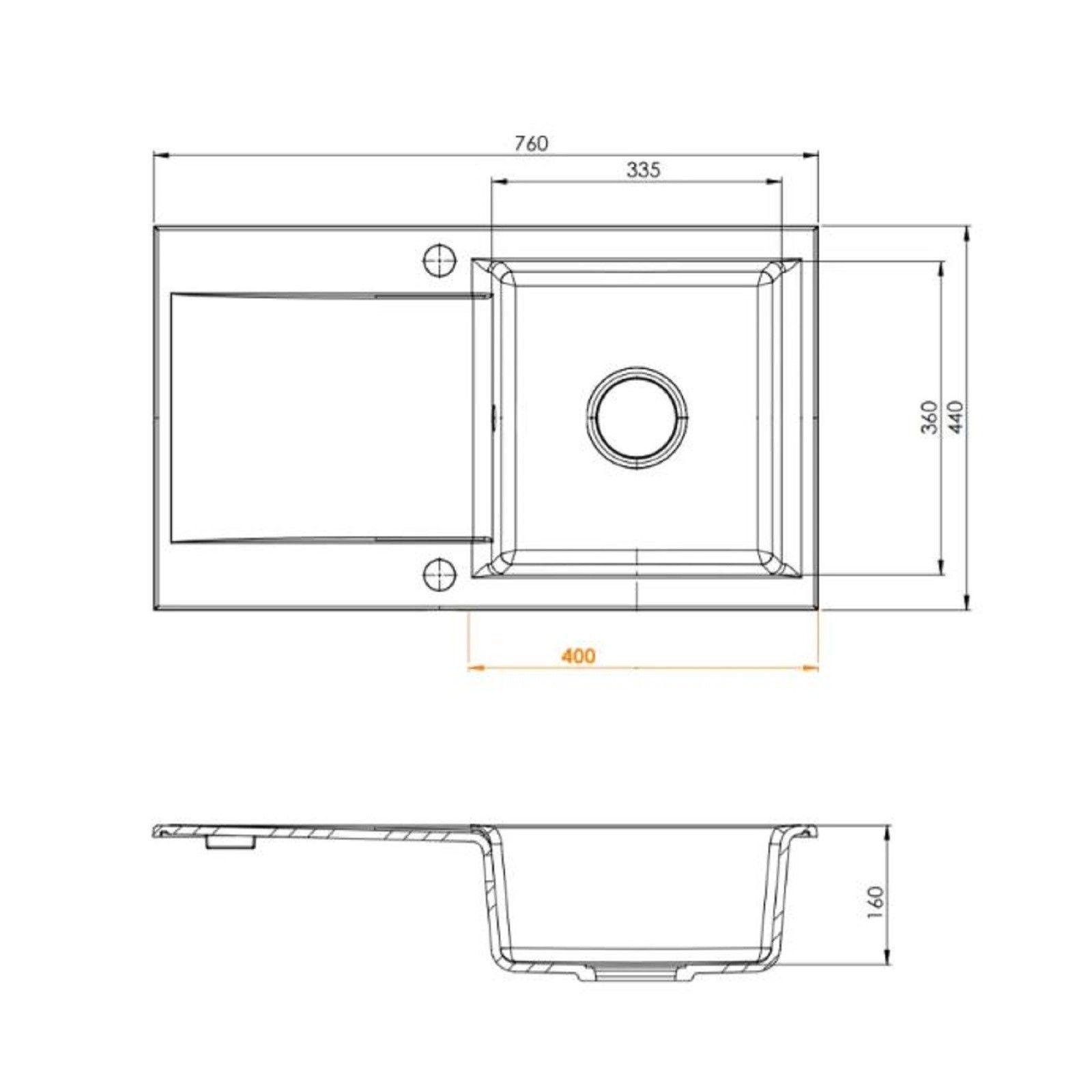 QLS QLS Spülbecken 76x44 cm Abtropffläche Siphon Reversibel Luna Schwarz Metallic 11189