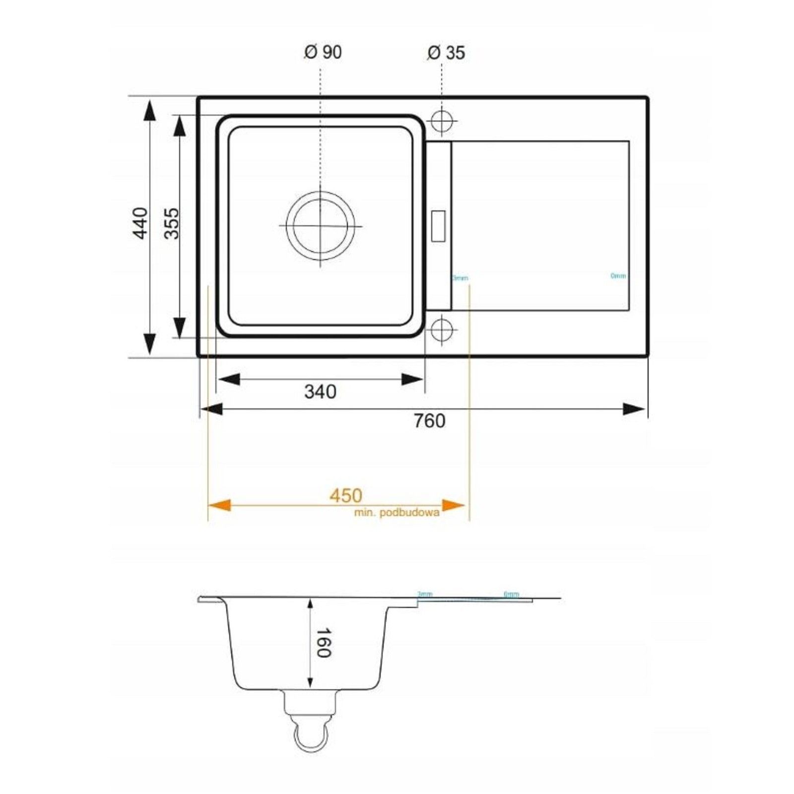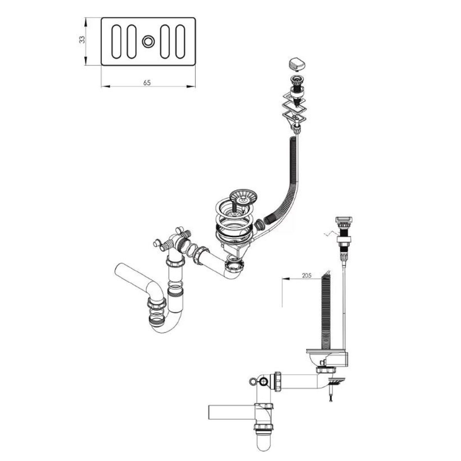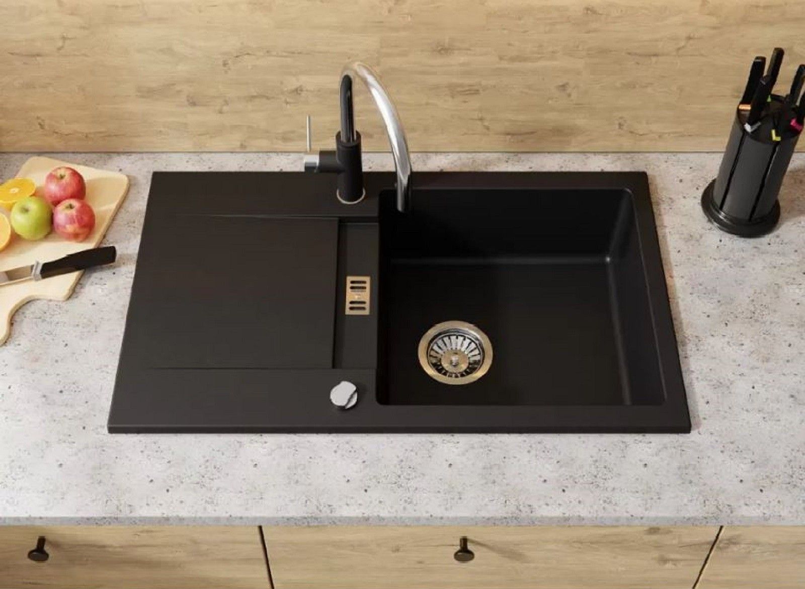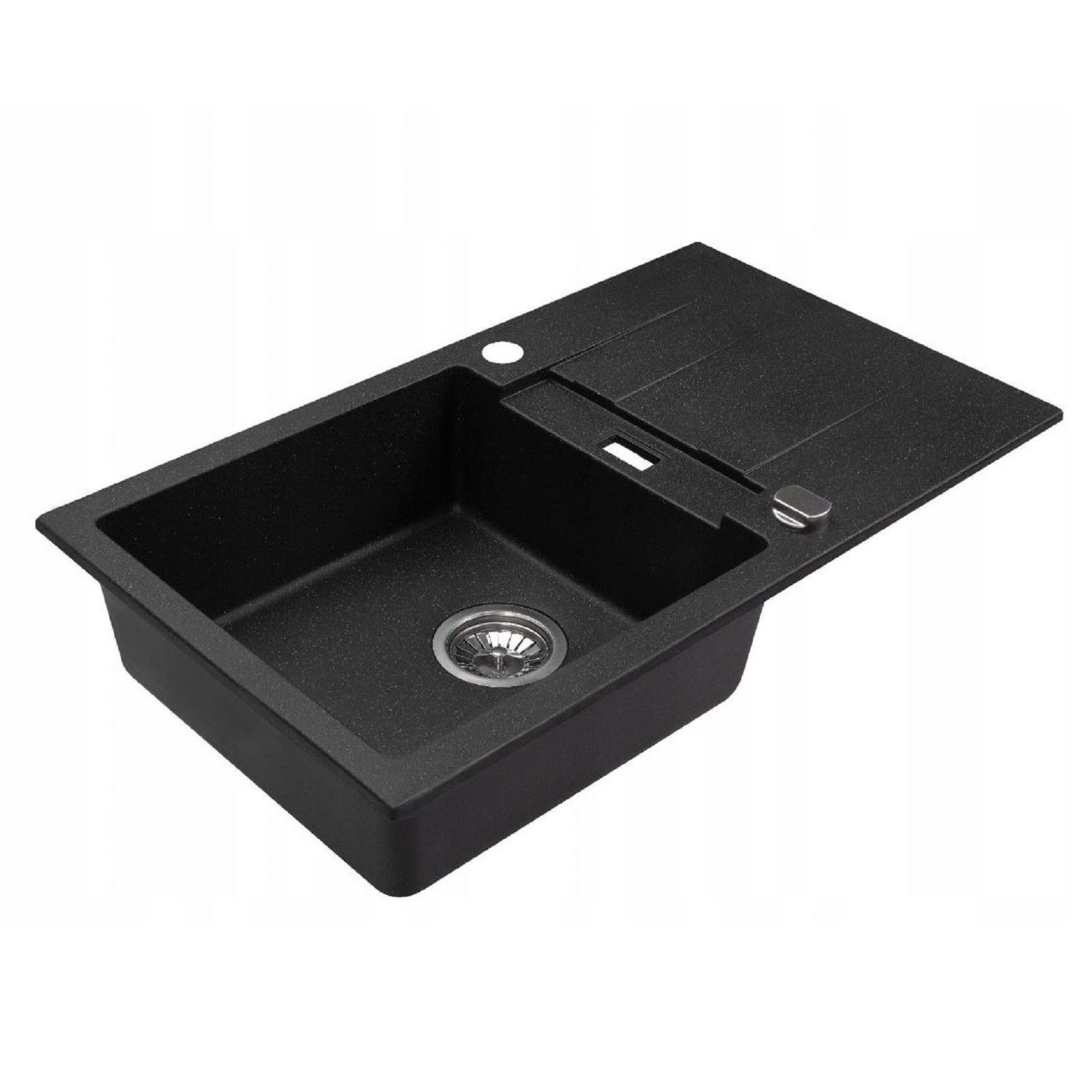 QLS QLS Spülbecken 76x44 cm Abtropffläche Siphon Reversibel Runner Schwarz Metallic 11199