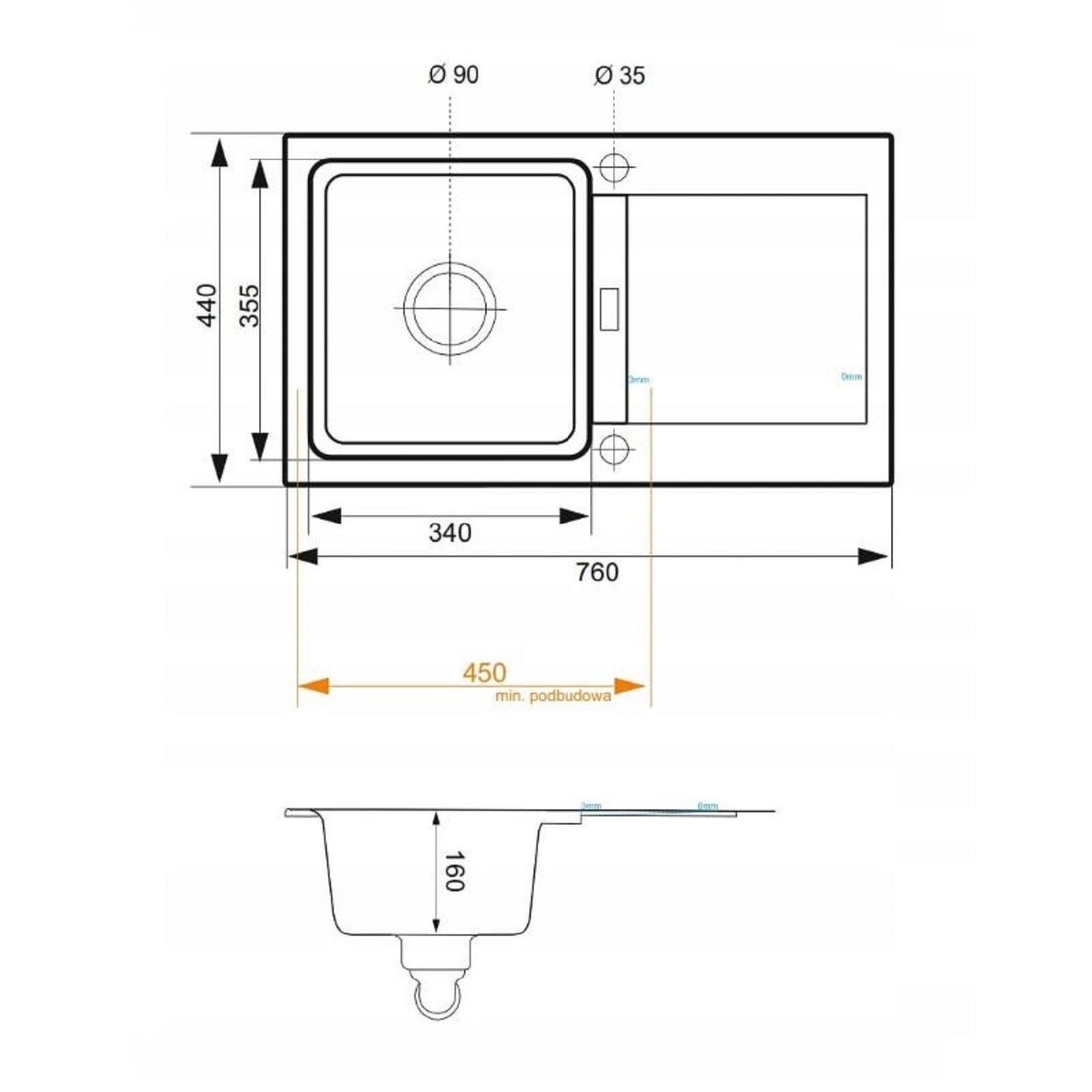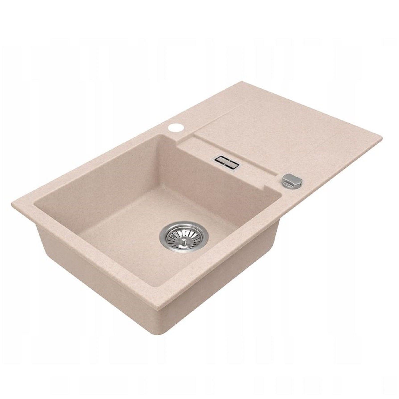 QLS QLS Spülbecken 76x44 cm mit Abtropffläche Siphon Reversibel - Runner Beige 11197