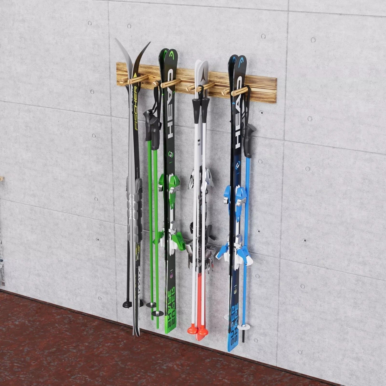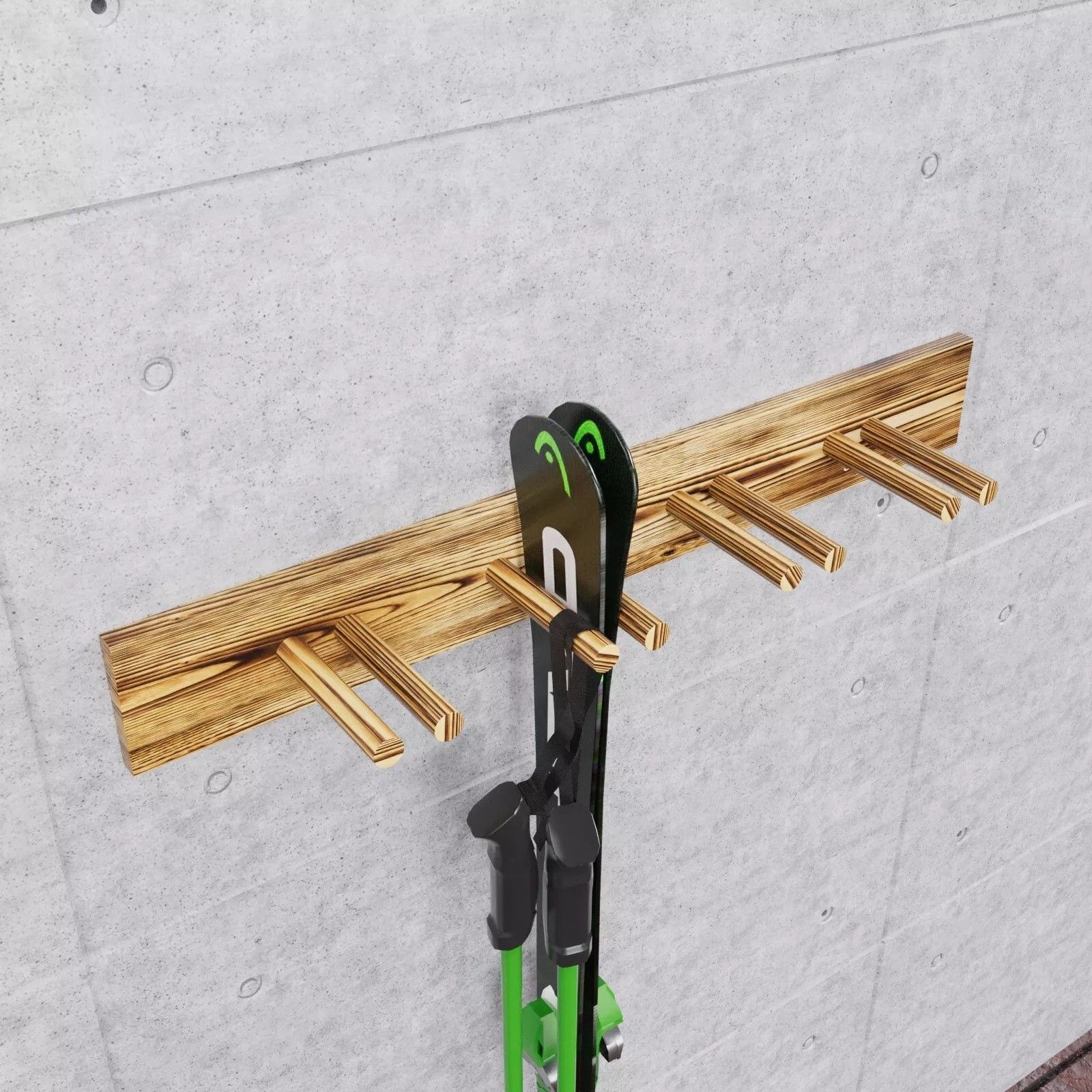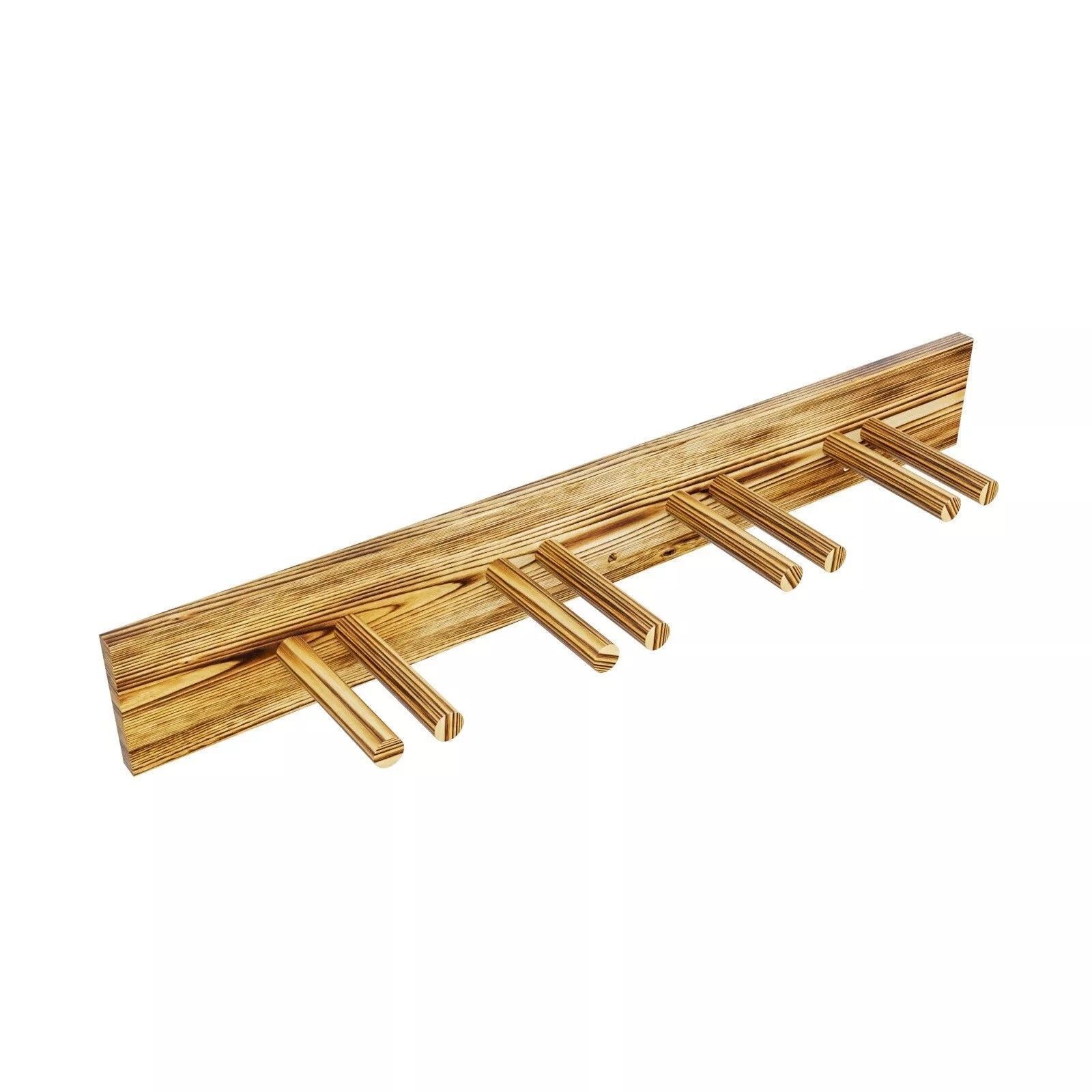 QLS QLS Wand Skihalterung 90 cm für 4 Paar geflammt Nordic Walking Stöcke aus Holz 11015