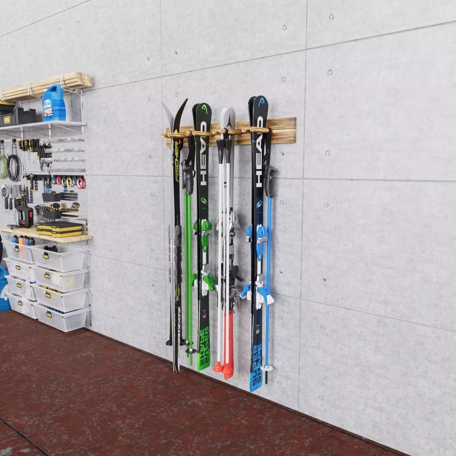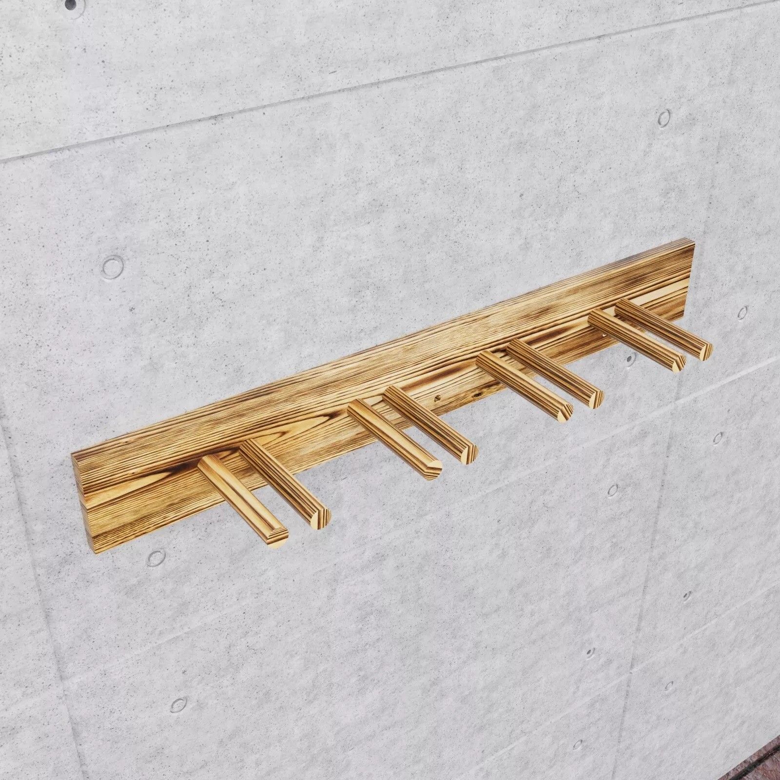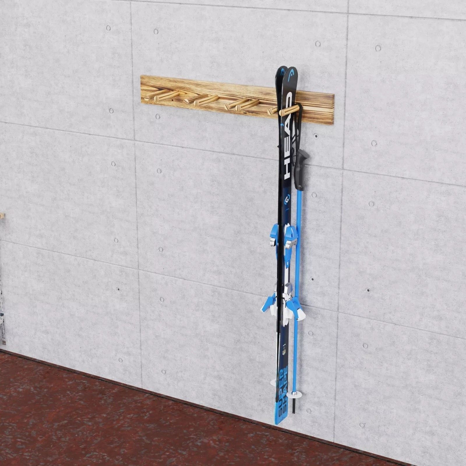 QLS QLS Wand Skihalterung 90 cm für 4 Paar geflammt Nordic Walking Stöcke aus Holz 11015