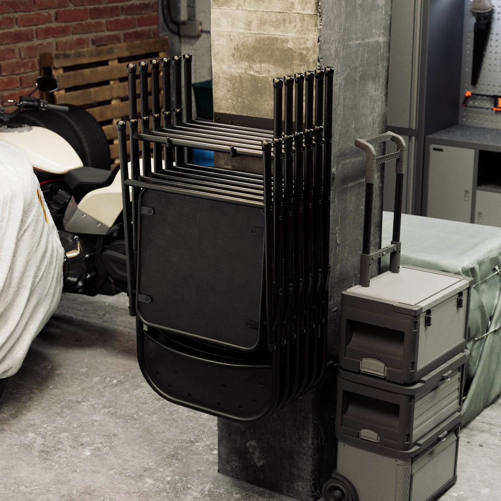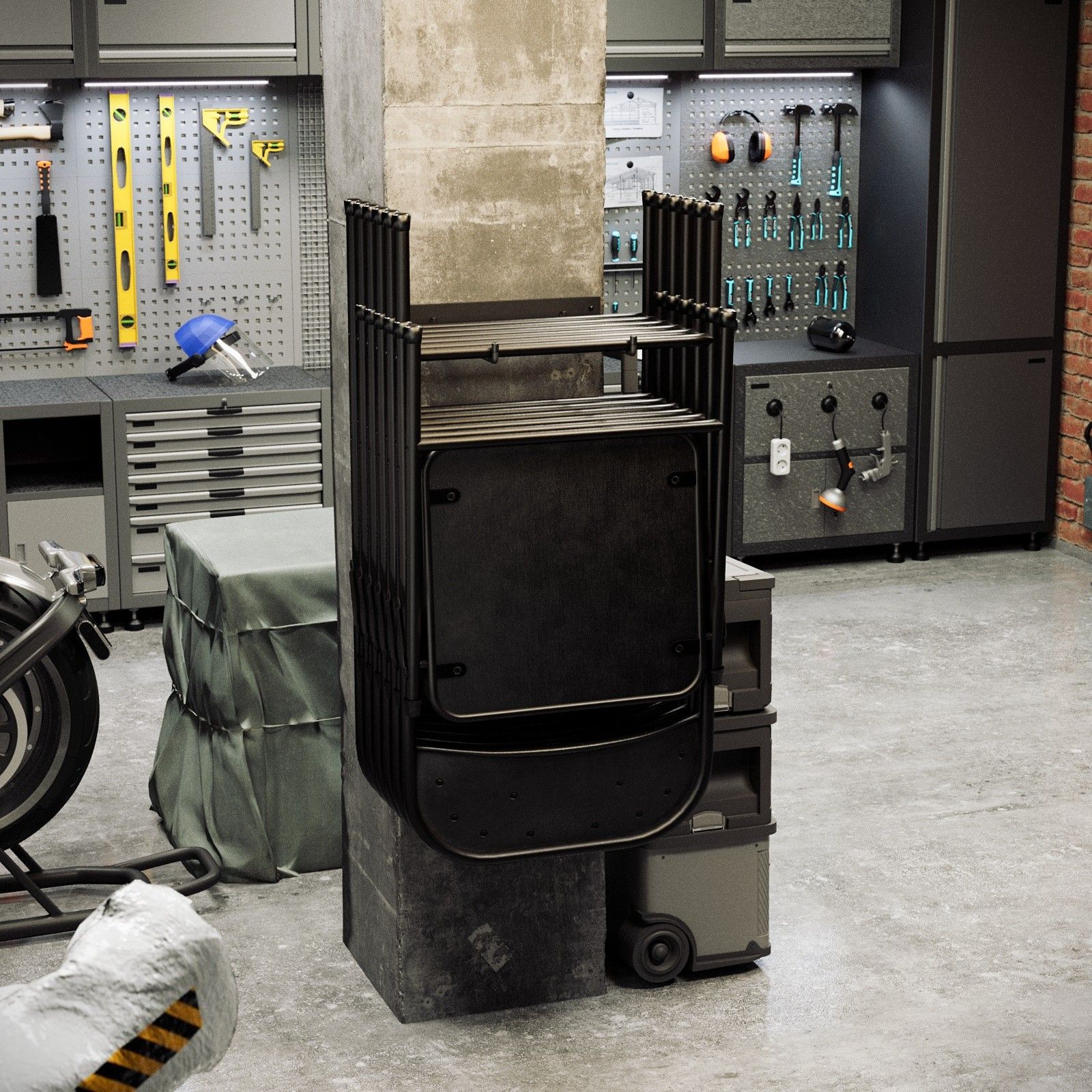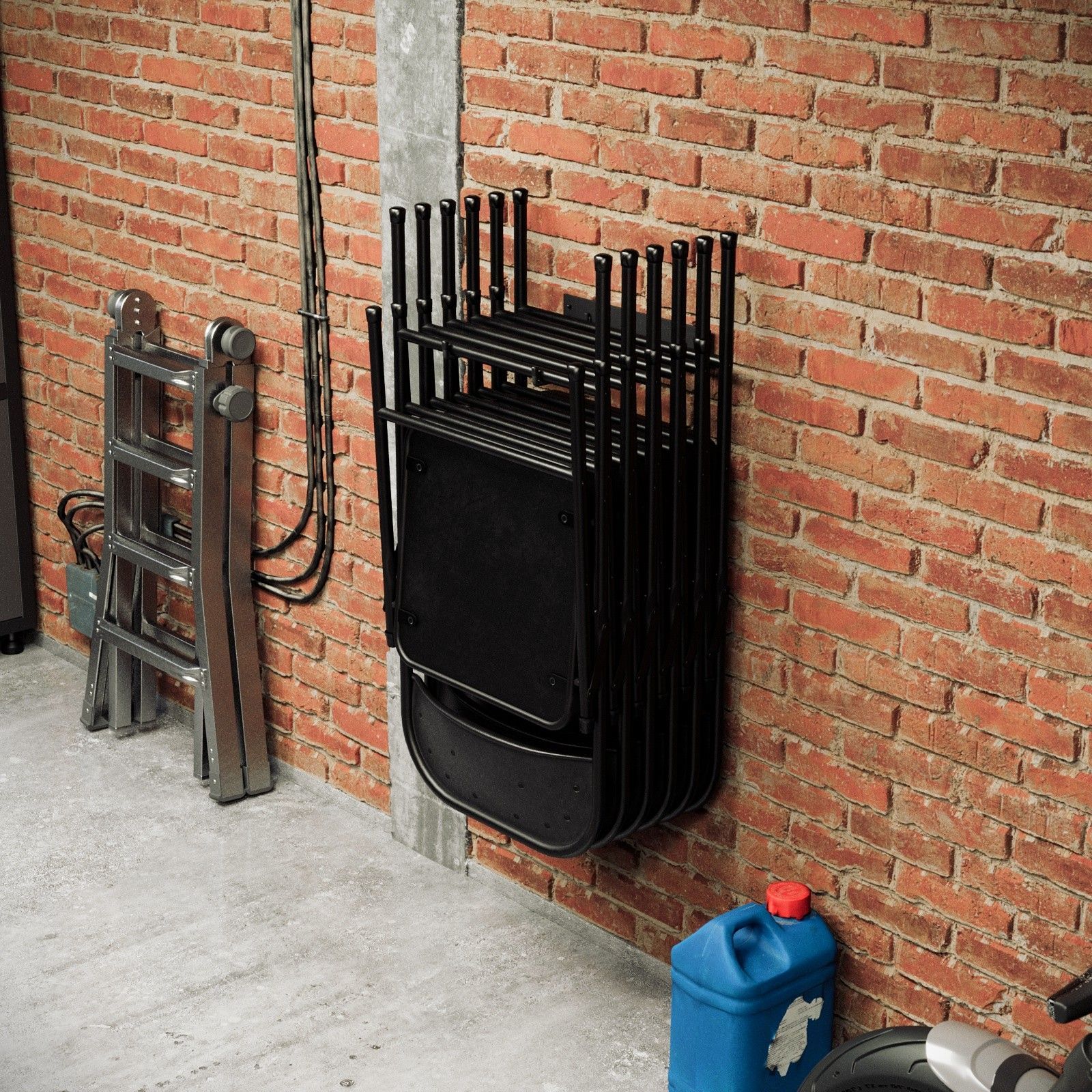 QLS QLS Wandhalterung aus Stahl Aufbewahrung für Gartenstühle Klappstühle Schwarz 11205