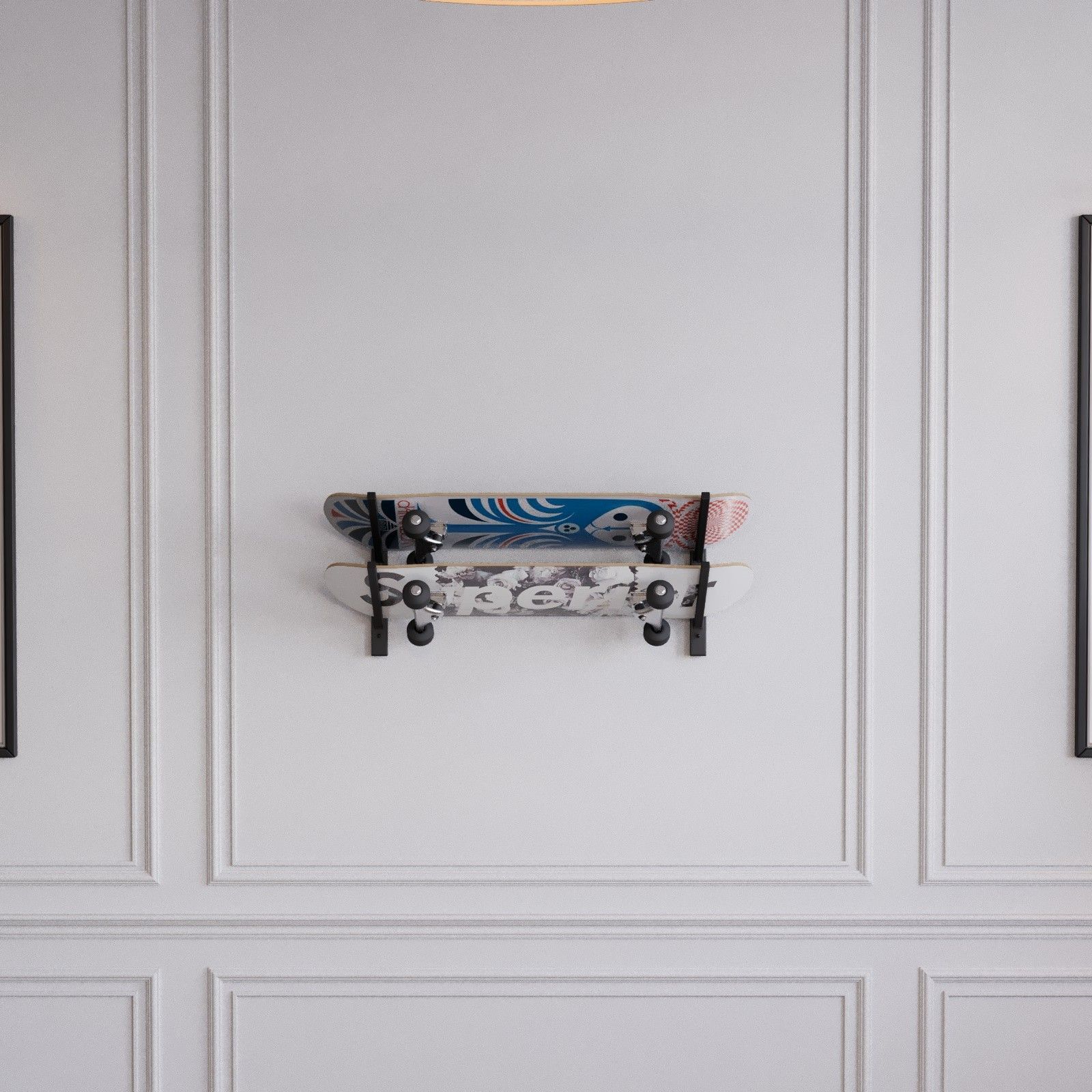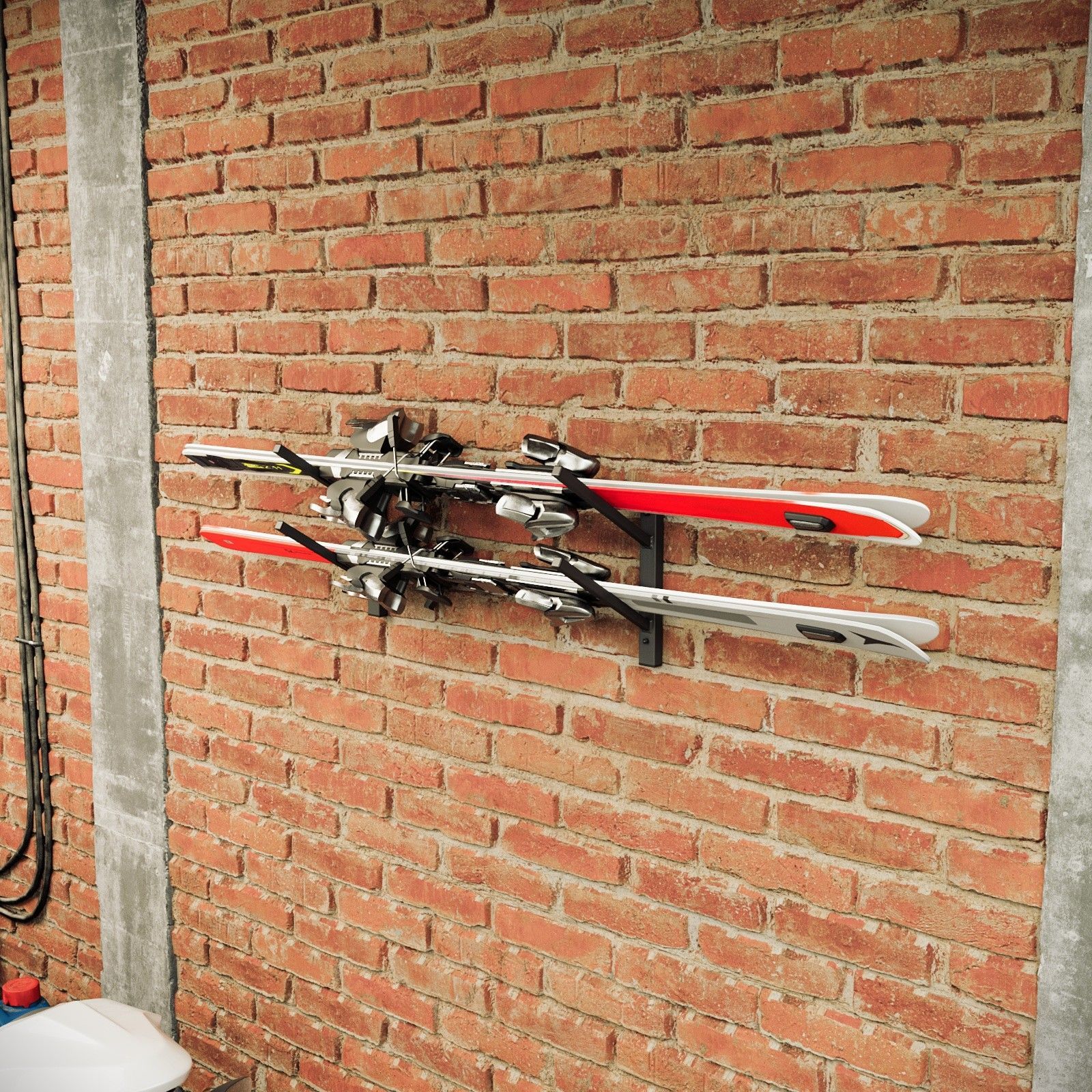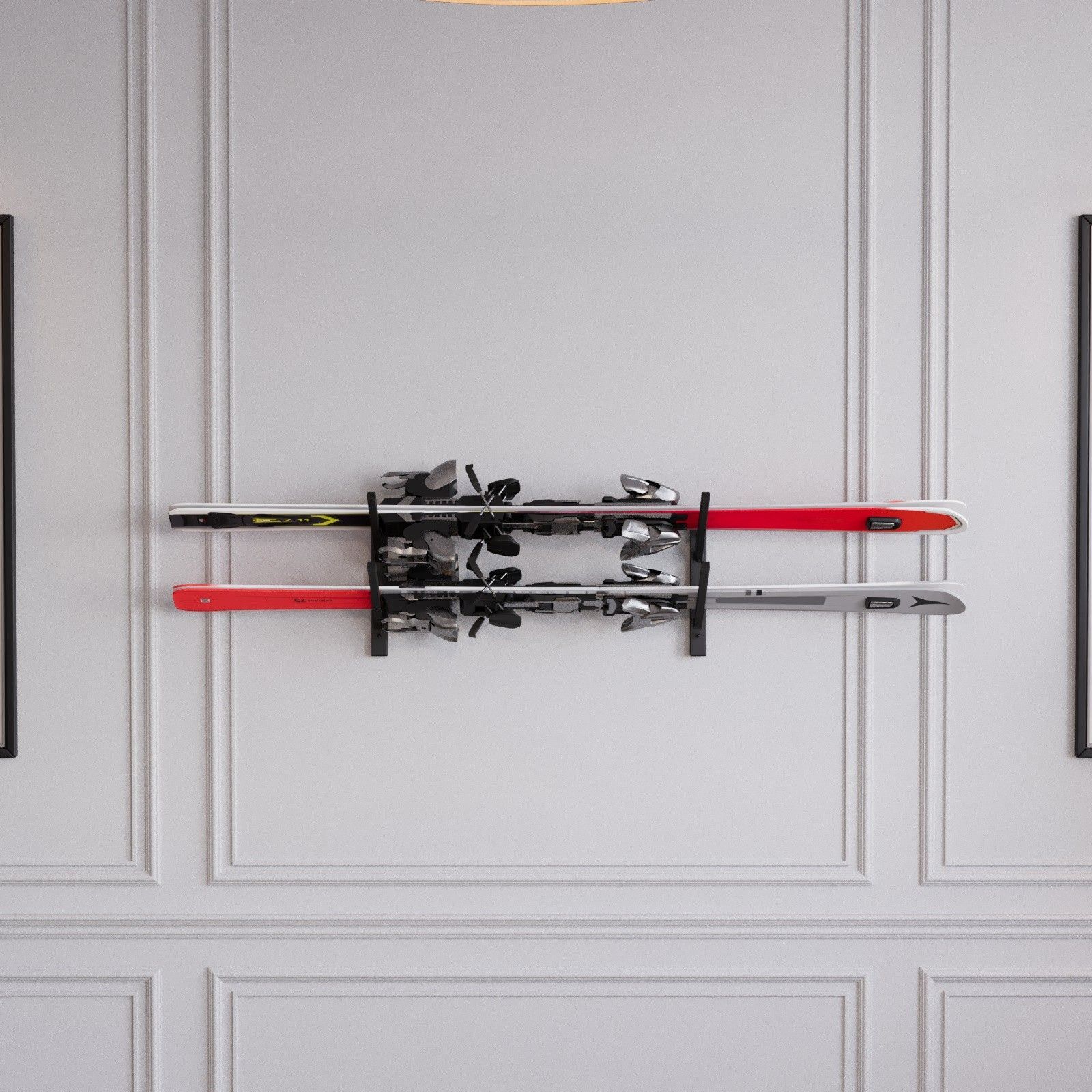 QLS QLS Wandhalterung für 2 Paar Skateboards Snowboards und Ski 4 Haken verstellbar 11403