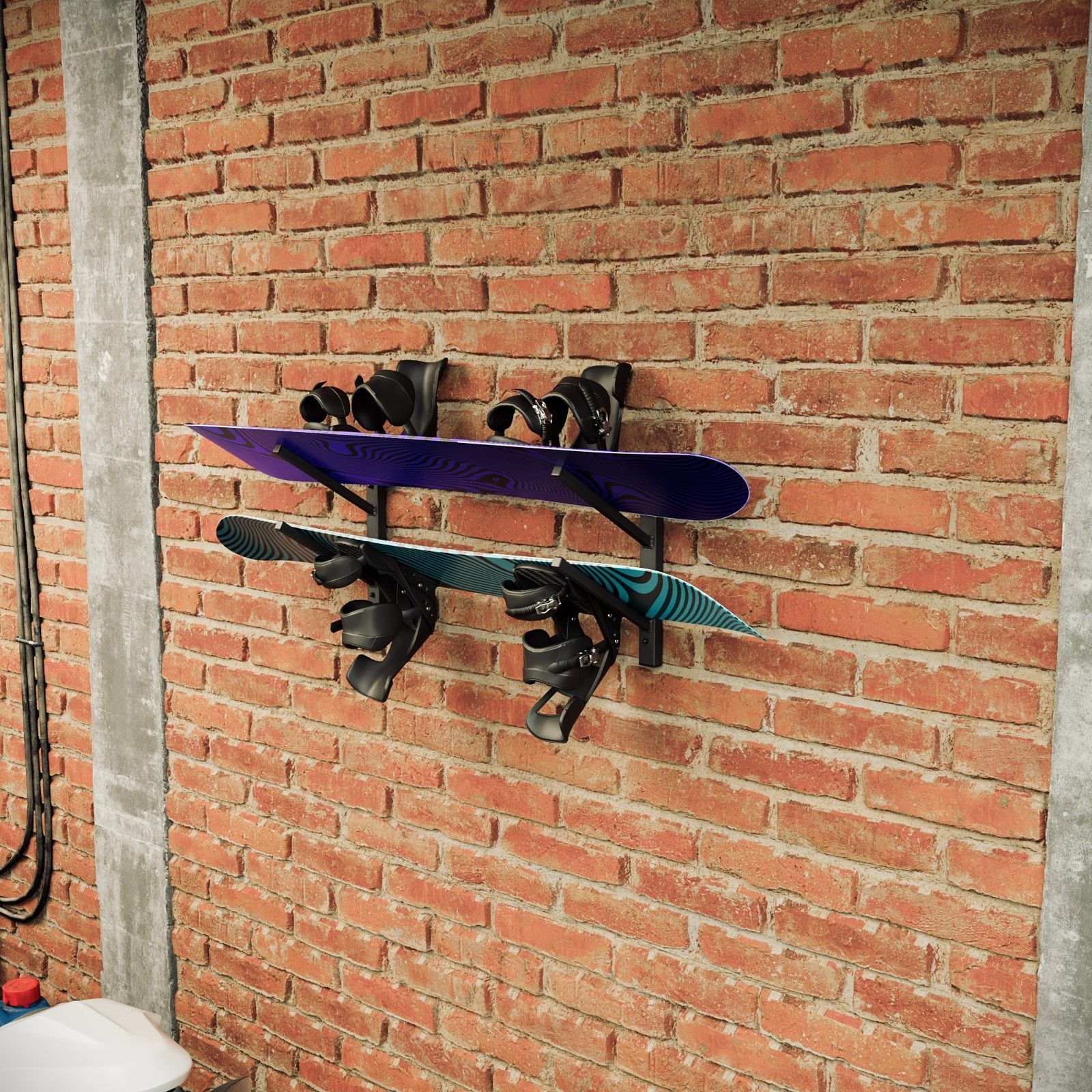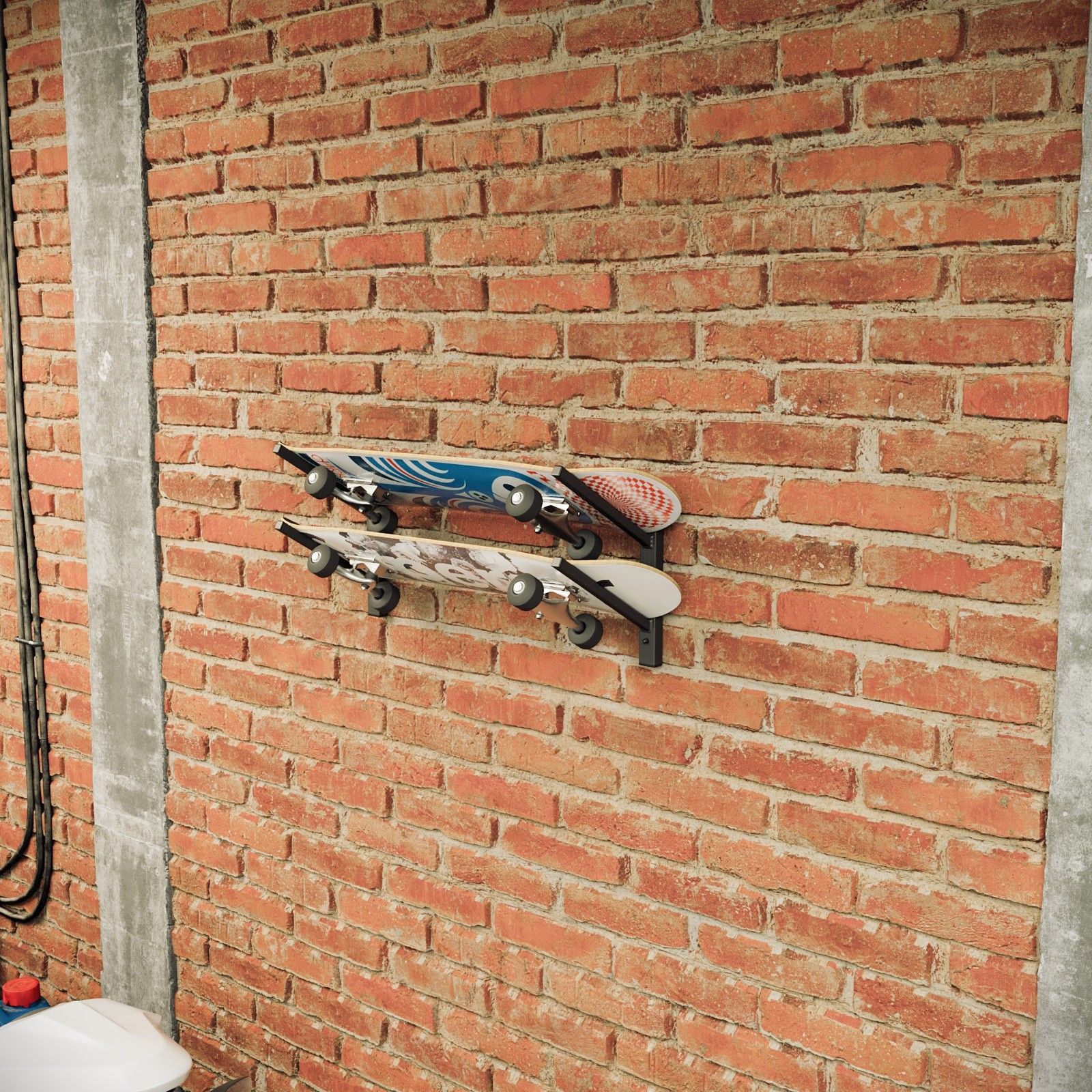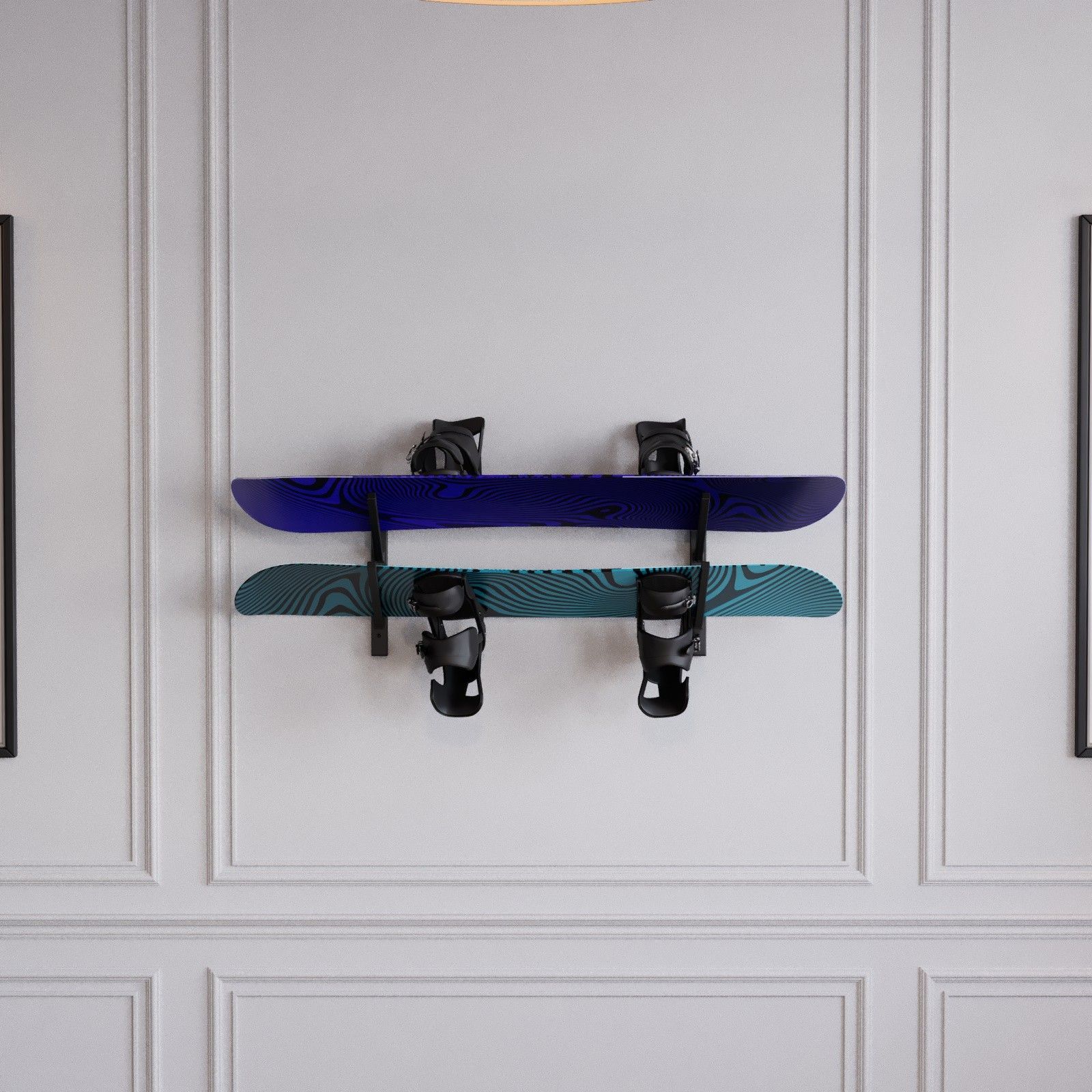 QLS QLS Wandhalterung für 2 Paar Skateboards Snowboards und Ski 4 Haken verstellbar 11403