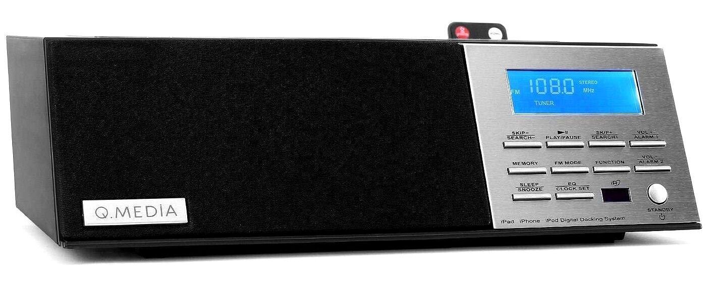Qmedia QIP20 Stereoanlage PLL Radio Uhrenwecker AUX iDock iPhone iPod iPad Black