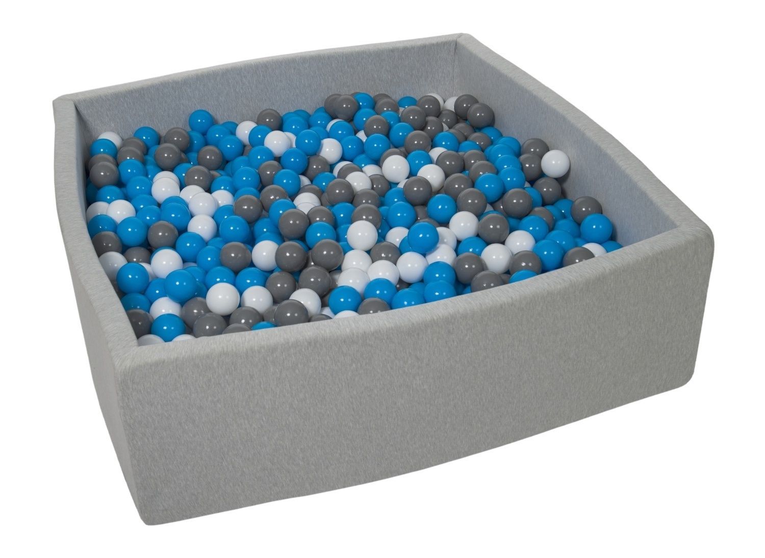 Quadratisches Bällebad 120x120 cm mit 1200 Bällen weiß, blau & grau