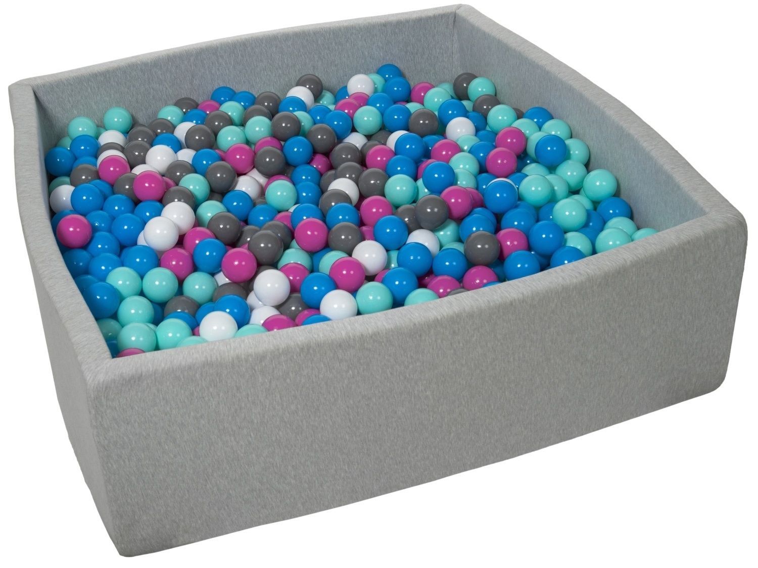 Quadratisches Bällebad 120x120 cm mit 1200 Bällen weiß, blau, lila, grau & türkis