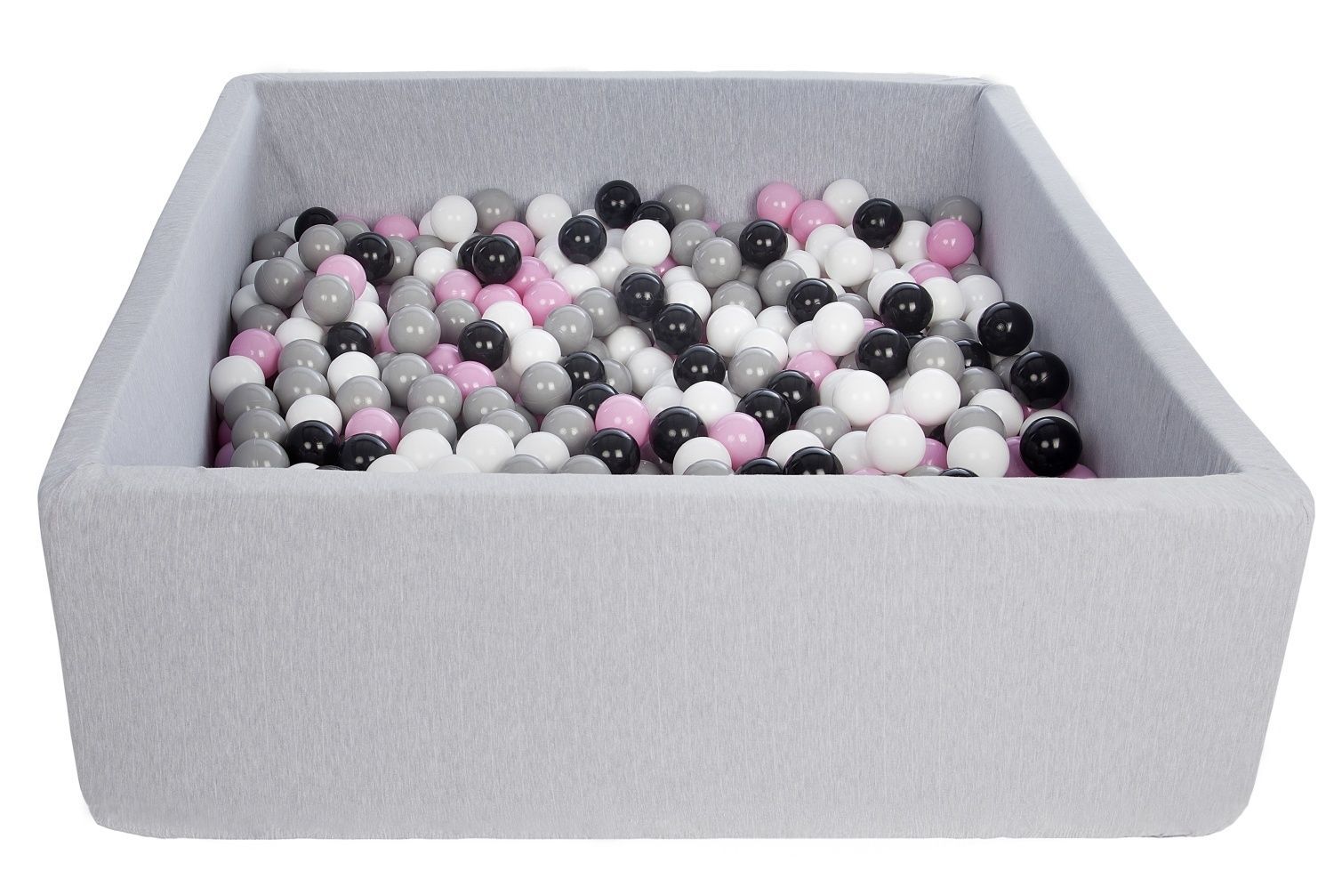 Quadratisches Bällebad 120x120 cm mit 600 Bällen schwarz, weiß, helllila & grau