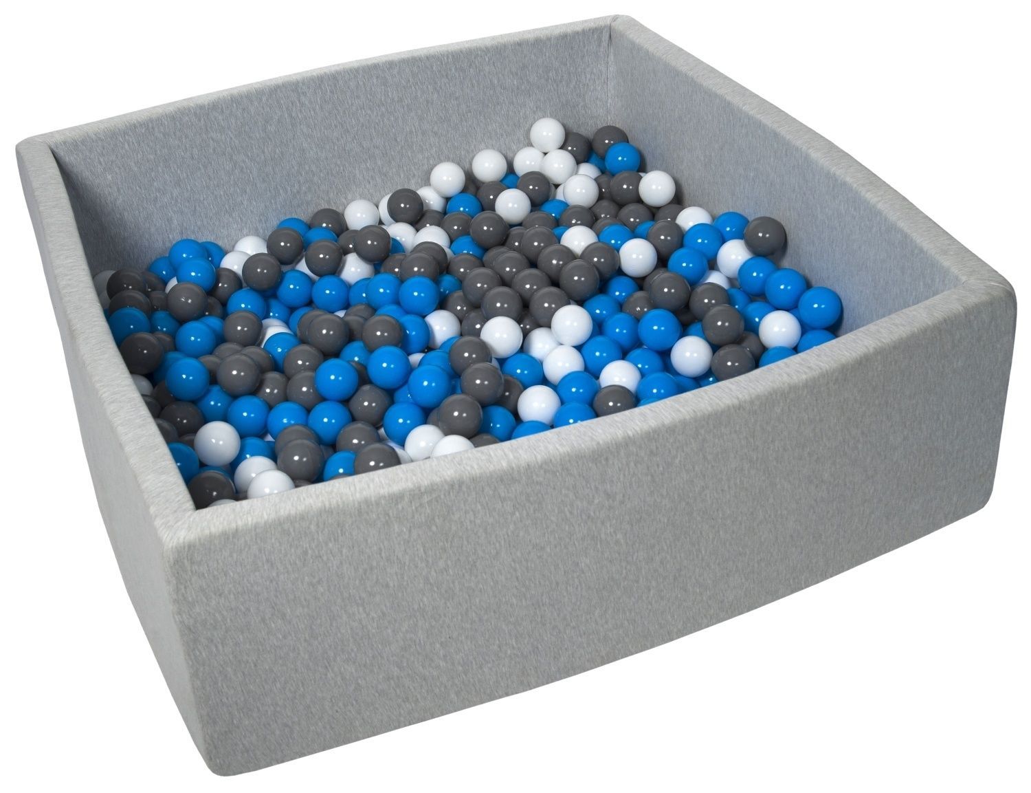 Quadratisches Bällebad 120x120 cm mit 600 Bällen weiß, blau & grau