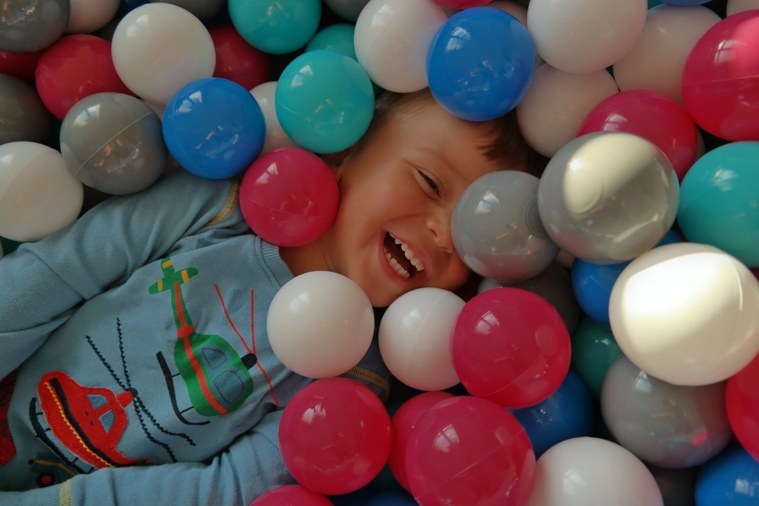 Quadratisches Bällebad 120x120 cm mit 600 Bällen weiß, helllila & grau