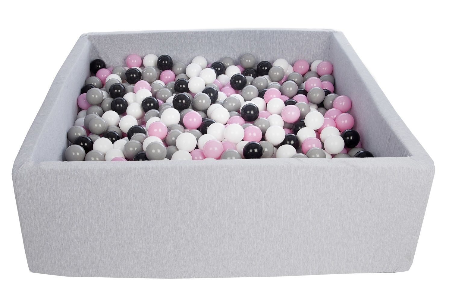 Quadratisches Bällebad 120x120 cm mit 900 Bällen schwarz, weiß, helllila & grau