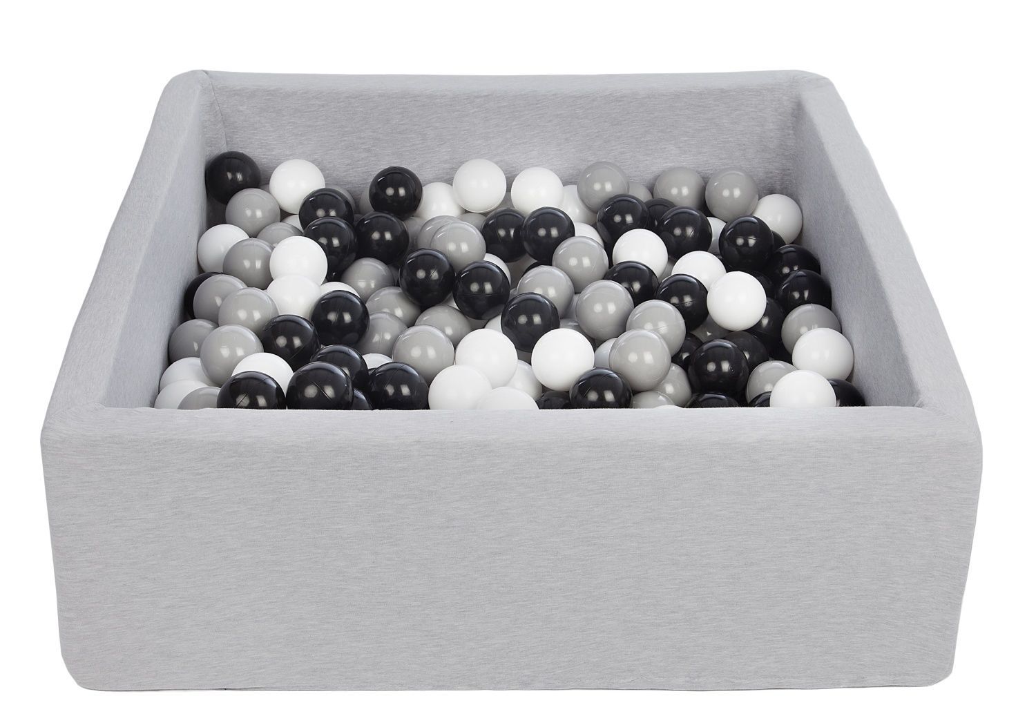 Quadratisches Bällebad 90x90 cm mit 300 Bällen schwarz, weiß & grau