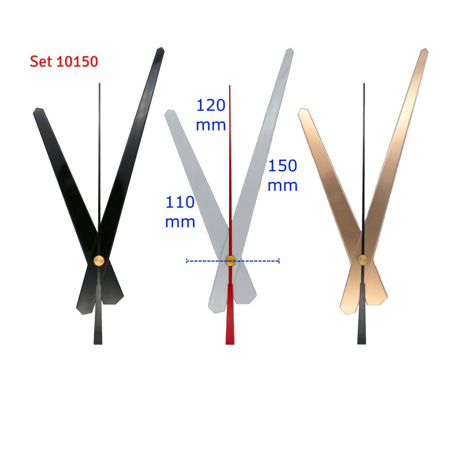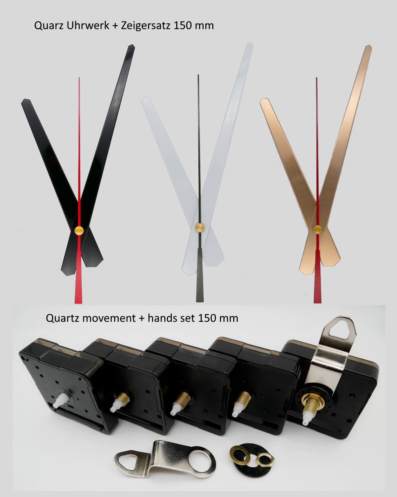 Quarz Uhrwerk lautlos mit Zeiger 150 mm Alu 15 cm leise schwarz weiß gold lang