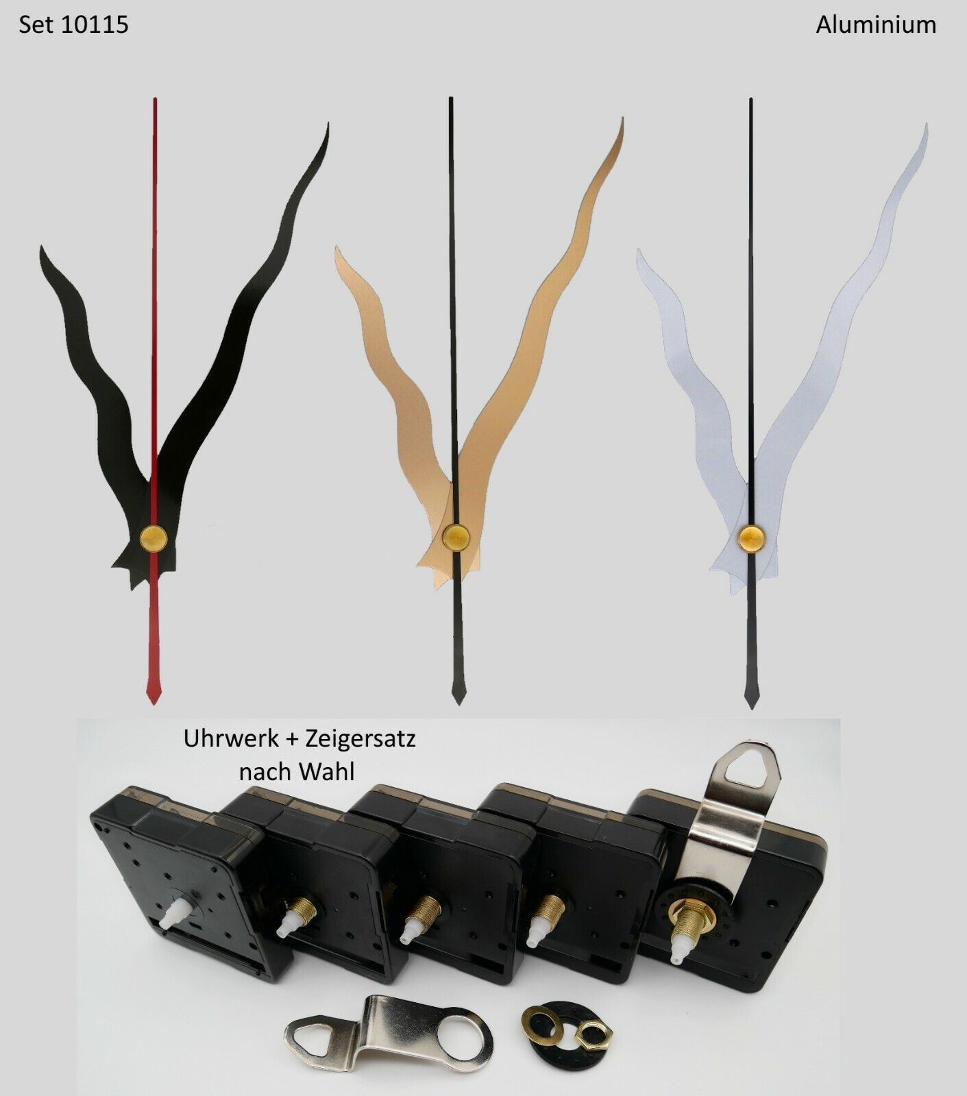 Quarz Uhrwerk lautlos mit Zeigersatz 12 cm schwarz weiß gold f. Wanduhr leise
