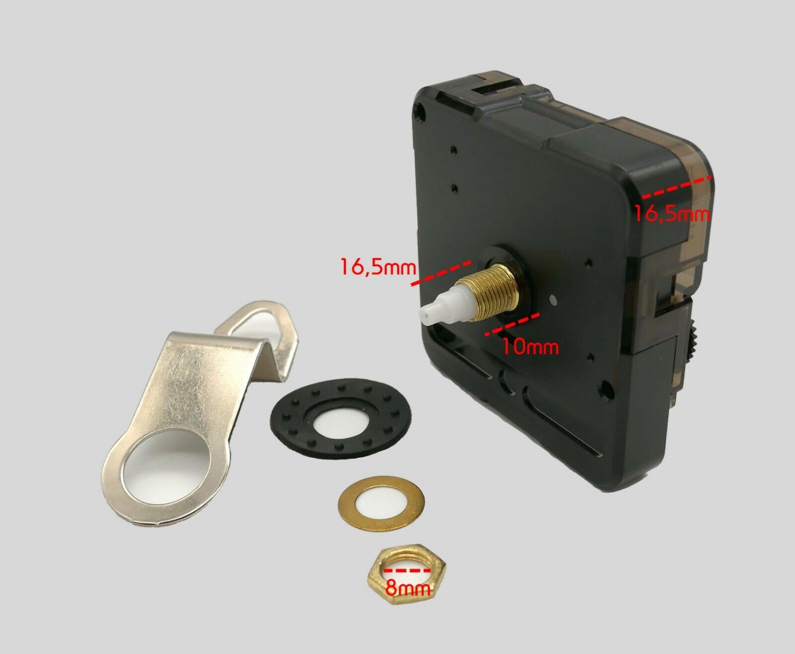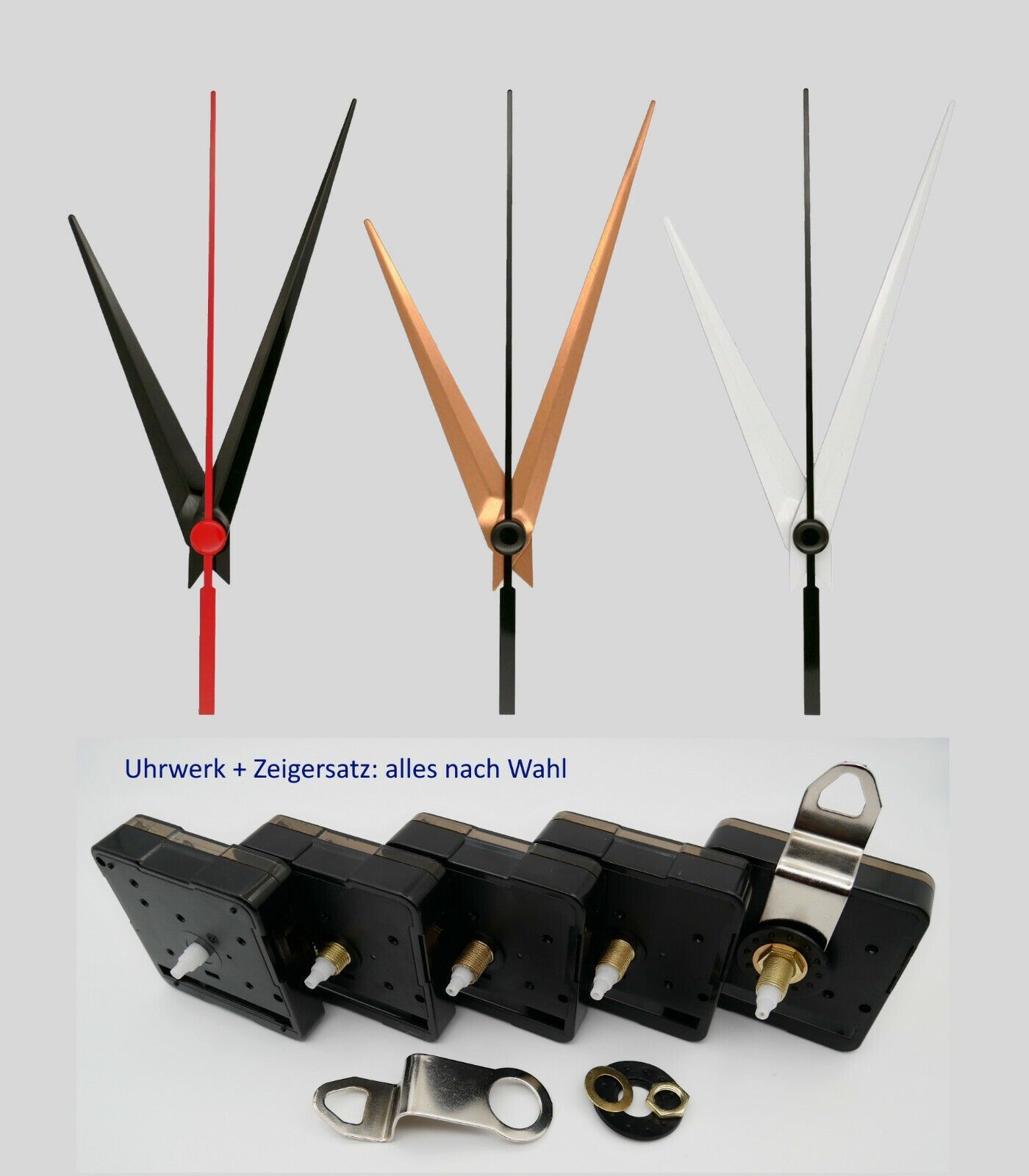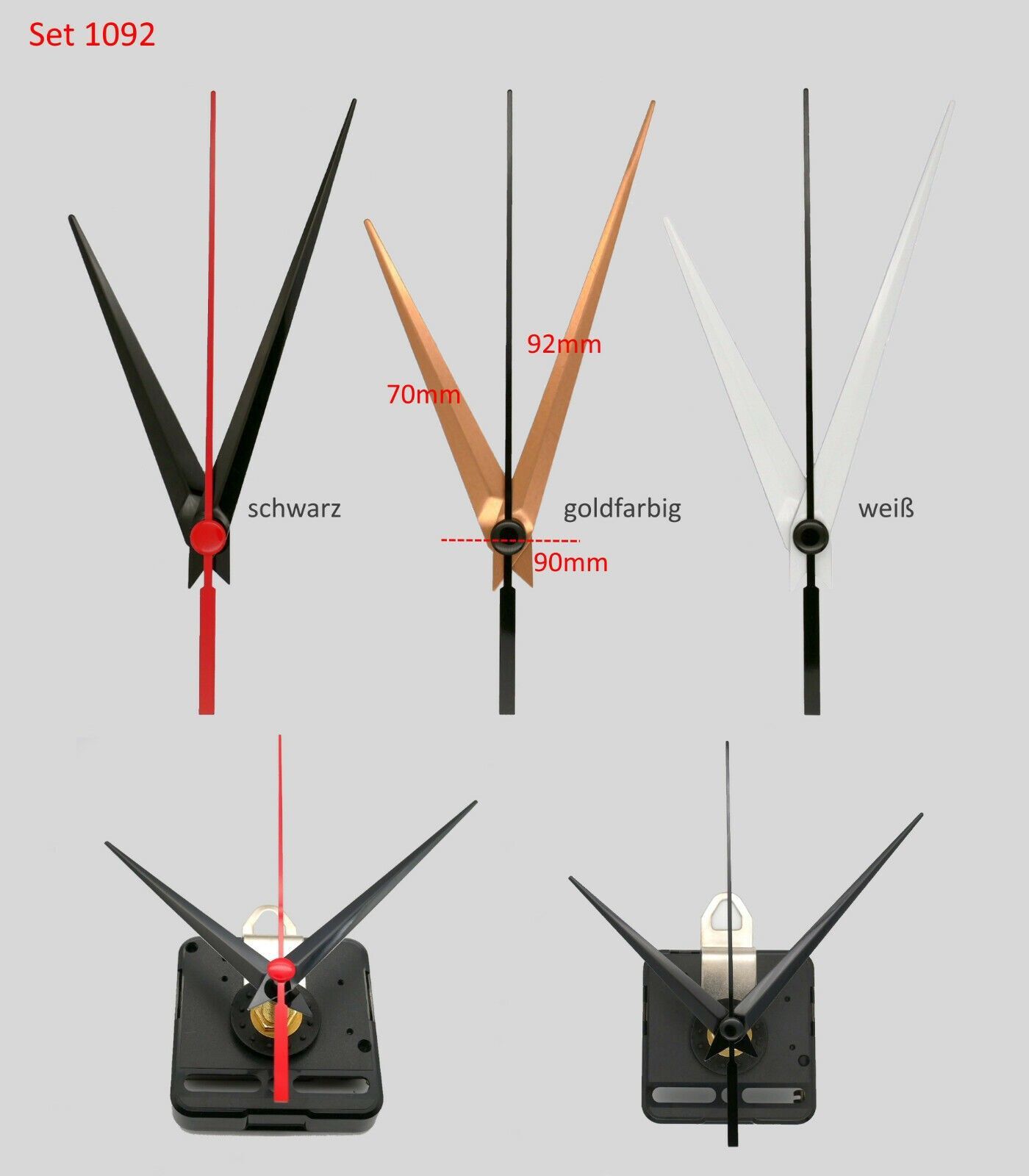 Quarz Uhrwerk lautlos mit Zeigersatz 90 mm Alu schwarz weiß gold 9 cm f. Wanduhr