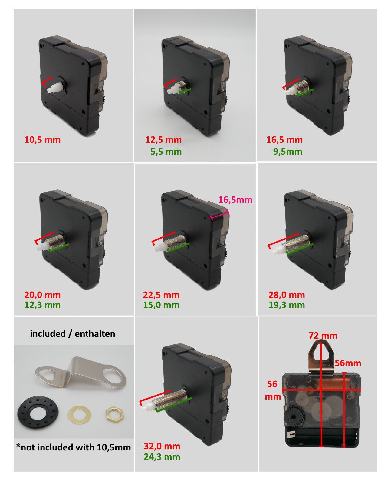 Quarz Uhrwerk lautlos Welle nach Wahl f. DIY, Wanduhr ohne ticken leise lang New