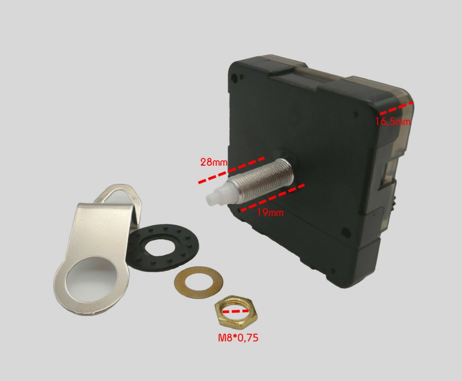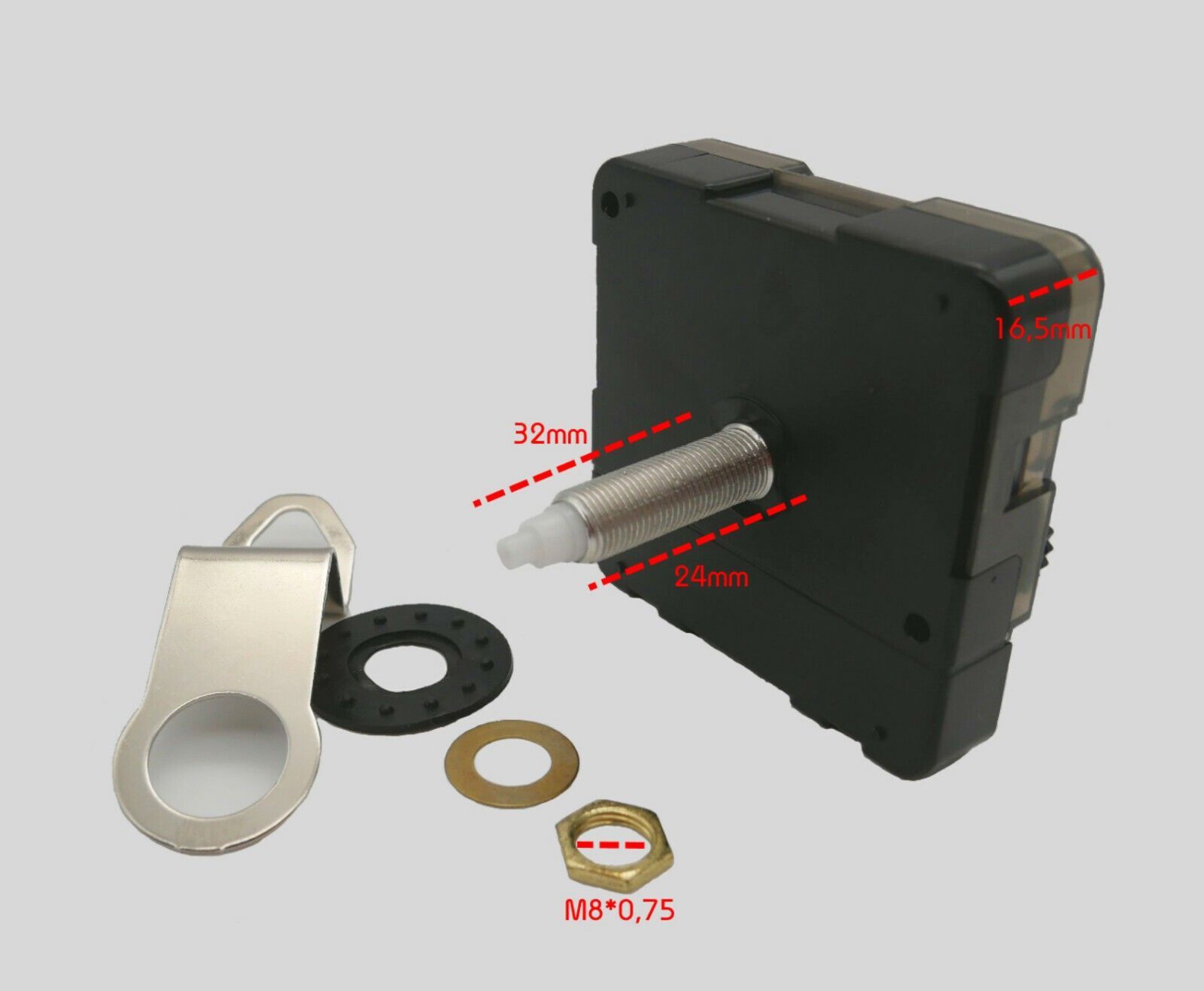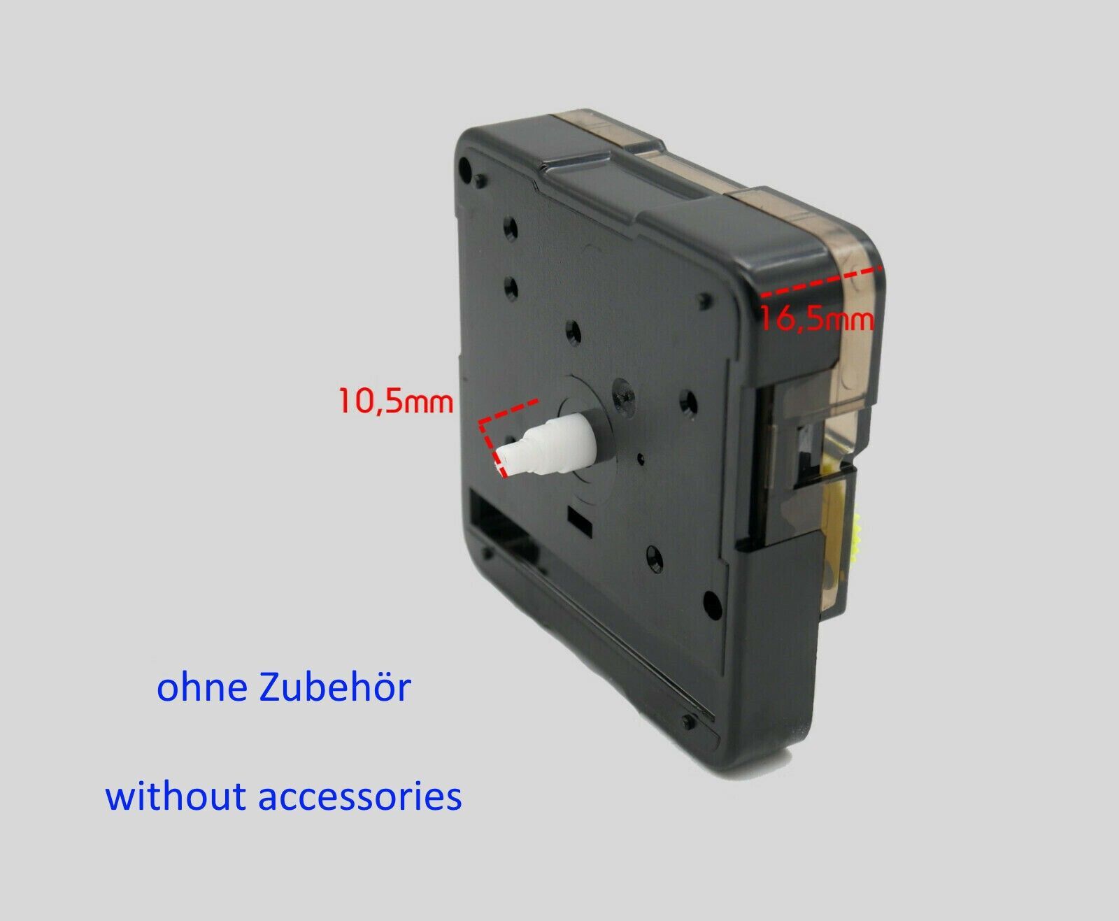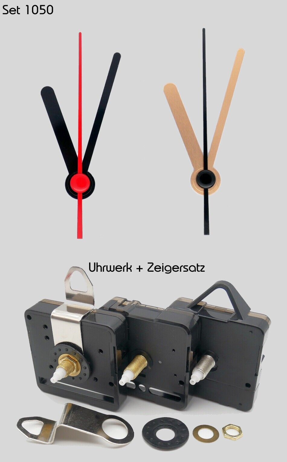 Quarz Uhrwerk mit Zeigersatz 50 mm Alu 5 cm lautlos leise Uhrzeiger schwarz gold..