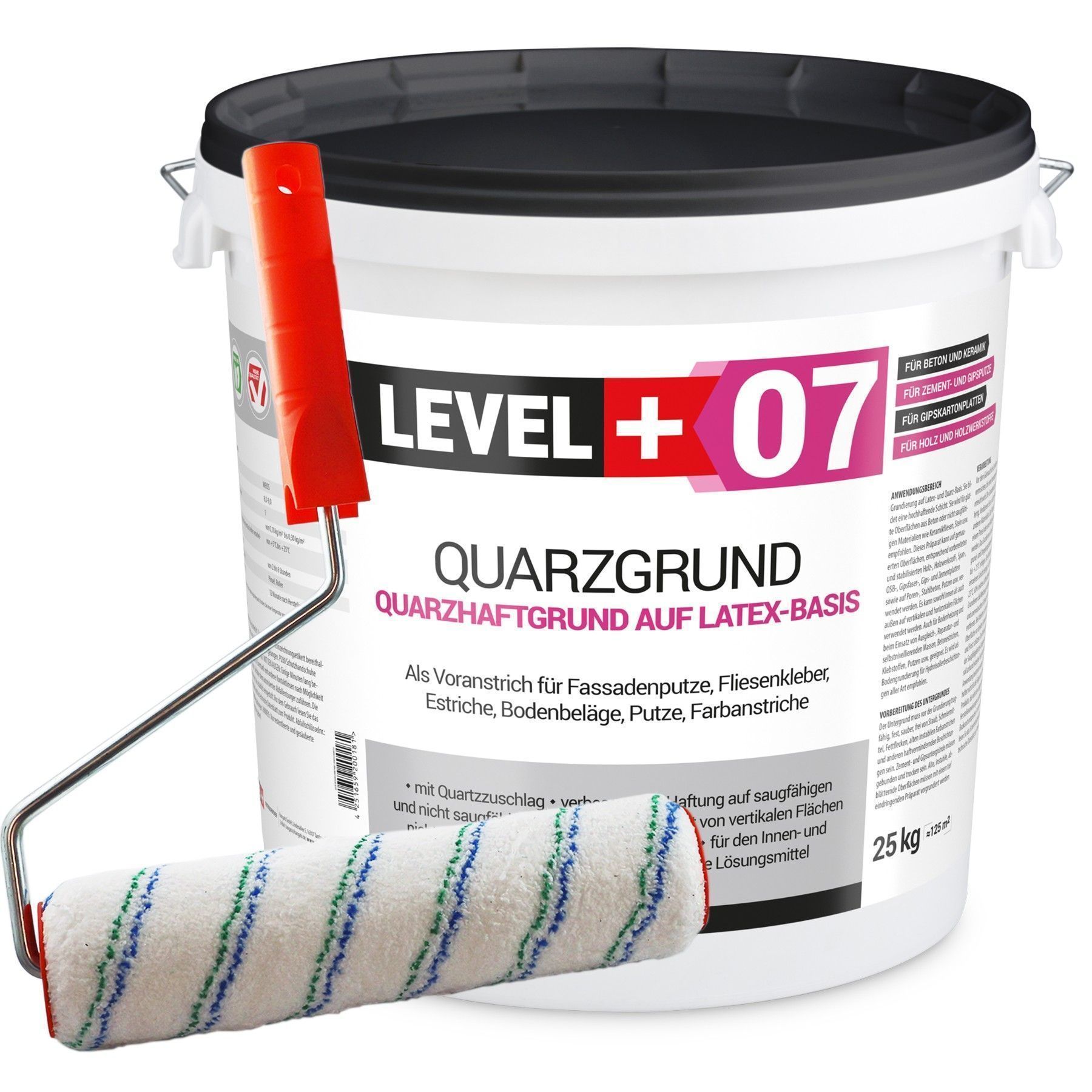 Quarzgrund 25Kg Haftgrund Weiß Frostbeständig + Streichroller 25cm Mikrofaser L+07