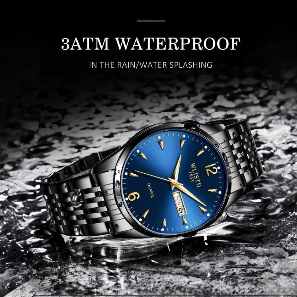 Quarzuhr Armbanduhr Edelstahl Herren Uhr, Multifunktionsuhr Herrenuhr