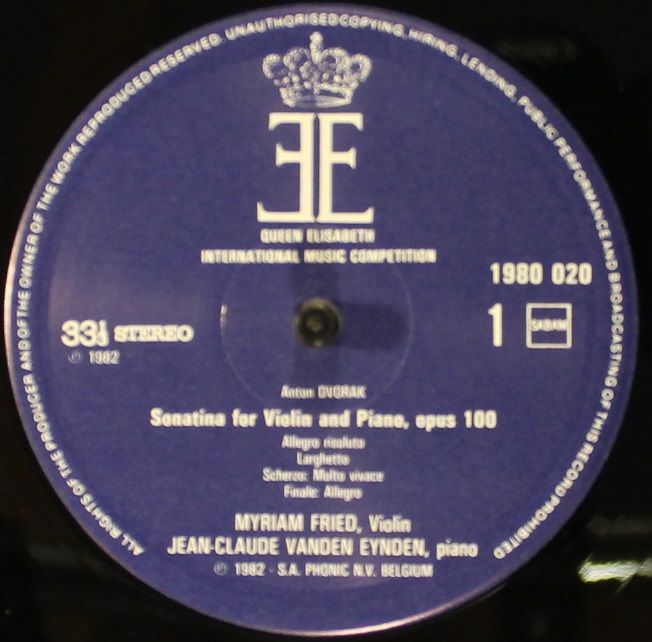 Condition Vinyl Near Mint (NM or M-) Condition Sleeve Very Good Plus (VG+) Tracks included: Sonatina For Violin And Piano, Opus 100 Composed By : Antonín Dvorák I 1. > Allegro Risoluto 2. > Larghetto 3. > Scherzo: Molto Vivace 4. > Finale: Allegro Sonata For Violin And Pian