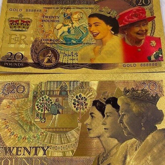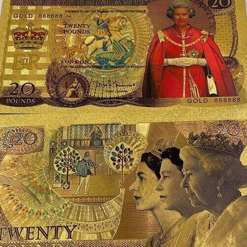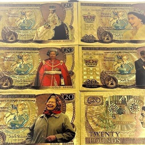 Queen Elisabeth Großbritannien 20 Pfund - 24 K vergoldet 5er Satz Neuheit