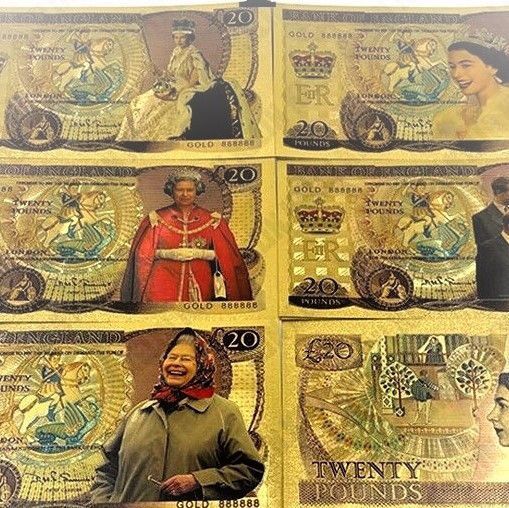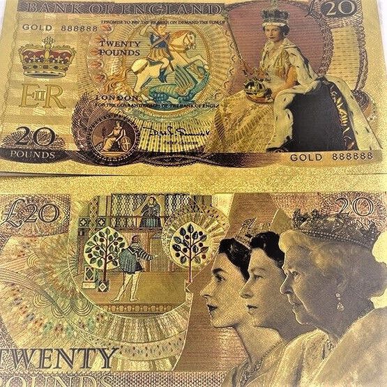 Queen Elisabeth Großbritannien 20 Pfund - 24 K vergoldet 5er Satz Neuheit (QE251025)