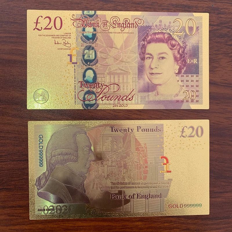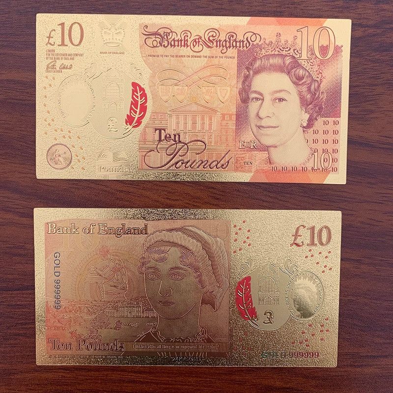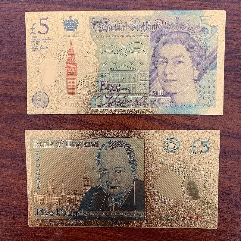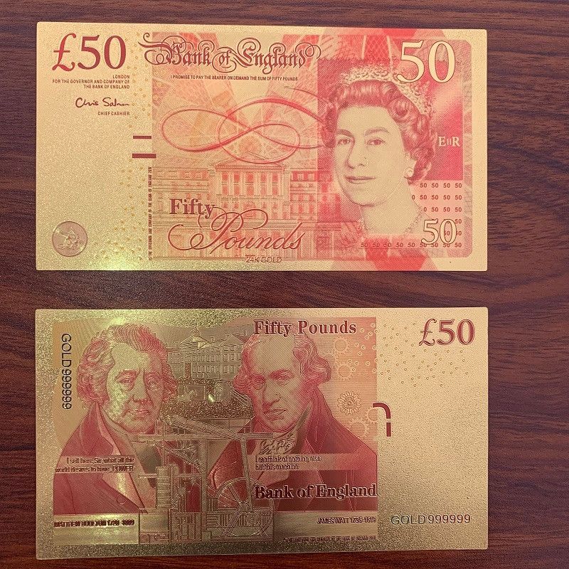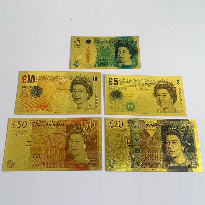 Gold Plated Banknoten Set - Pfund - UK Großbritannien - Nachdruck - 24 K vergoldet Folie - sehr selten 5 bis 50 Pfund - insgesamt 4 Scheine 5 Scheine = 2 x 5, 1 x 10, 1 x 20 und 1 x 50 Pfund Technische Information zum Artikel Material: vergoldet Größe: ca. original Größe Erhaltung: Neu Verpackung: F