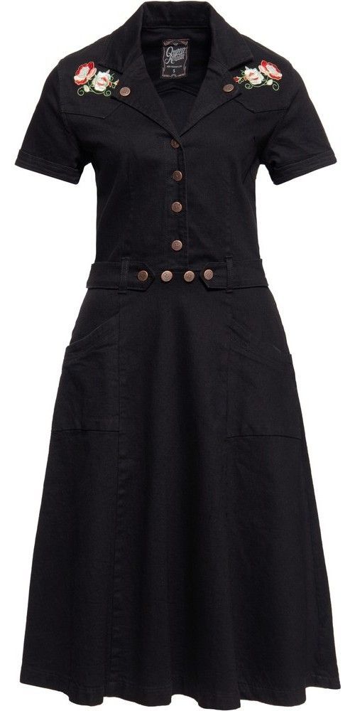 Queen Kerosin Damen 50s Swing Jeanskleid mit Stickerei Schwarz