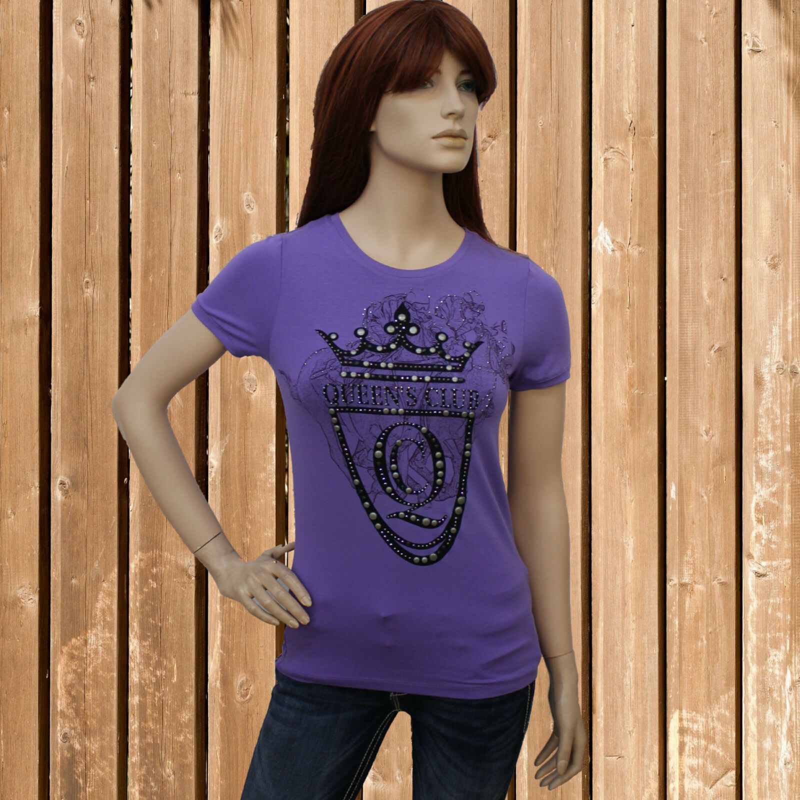Queen´s Club T-Shirt, Jersey Shirt mit Strass, flieder, Gr. L
