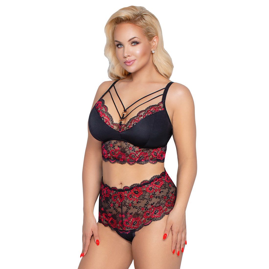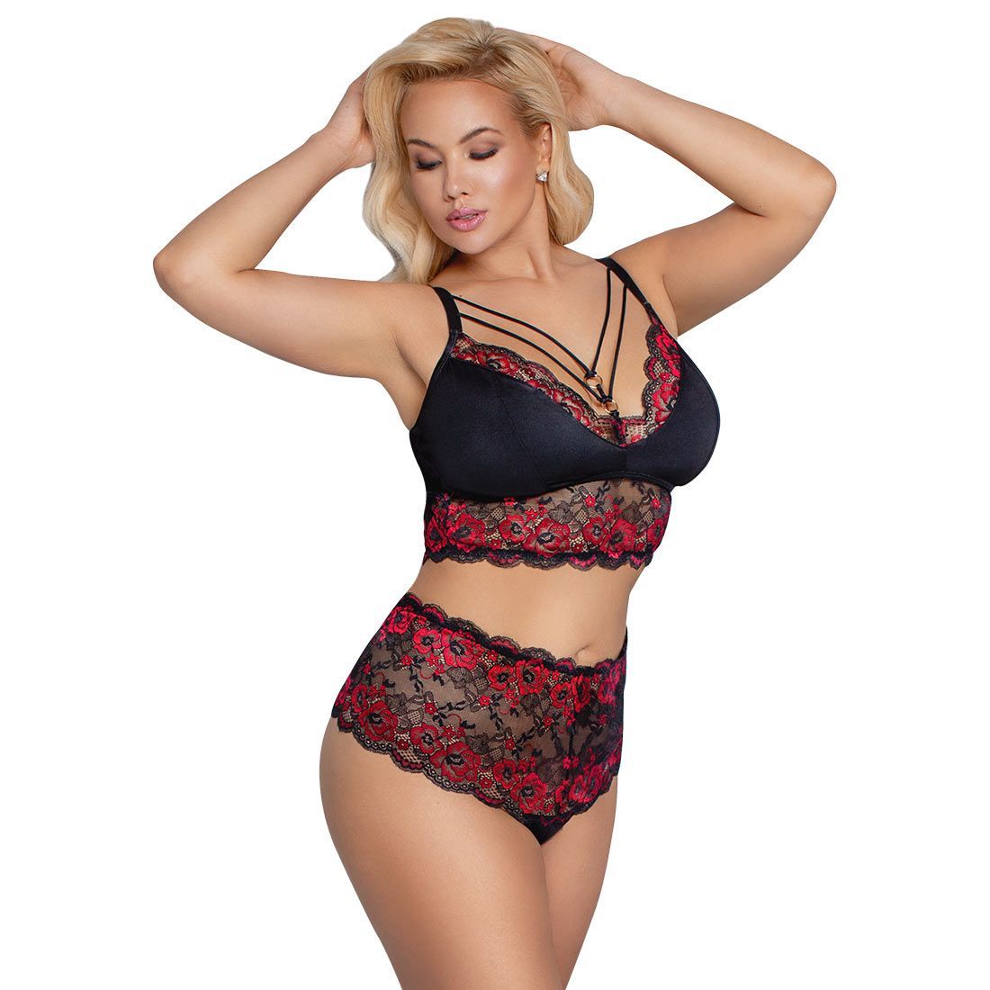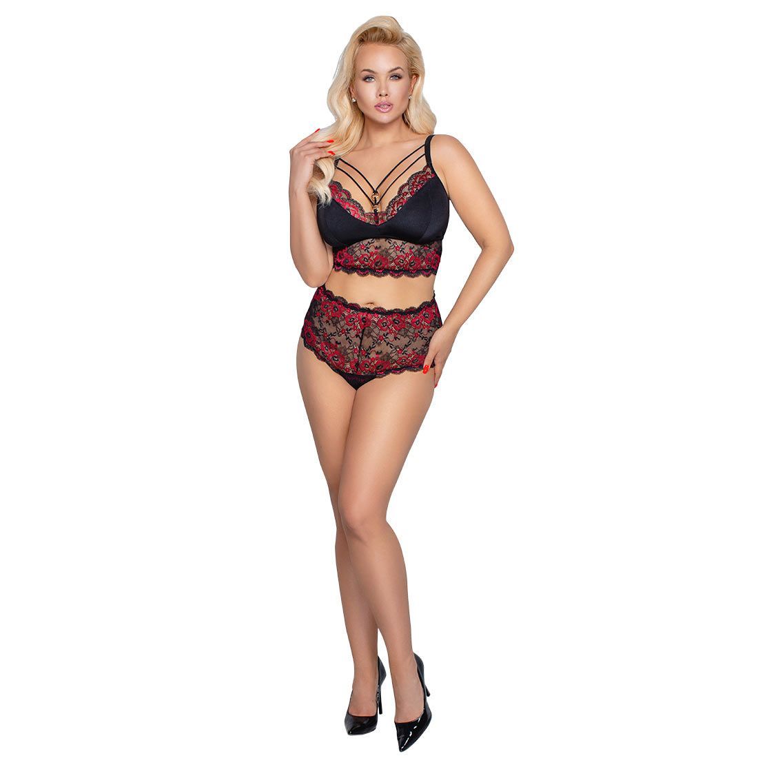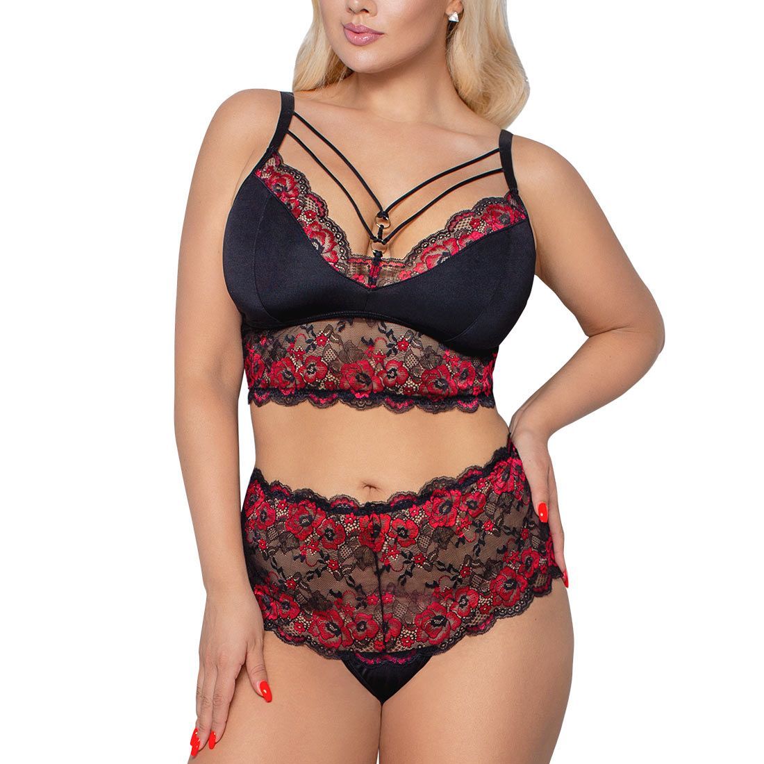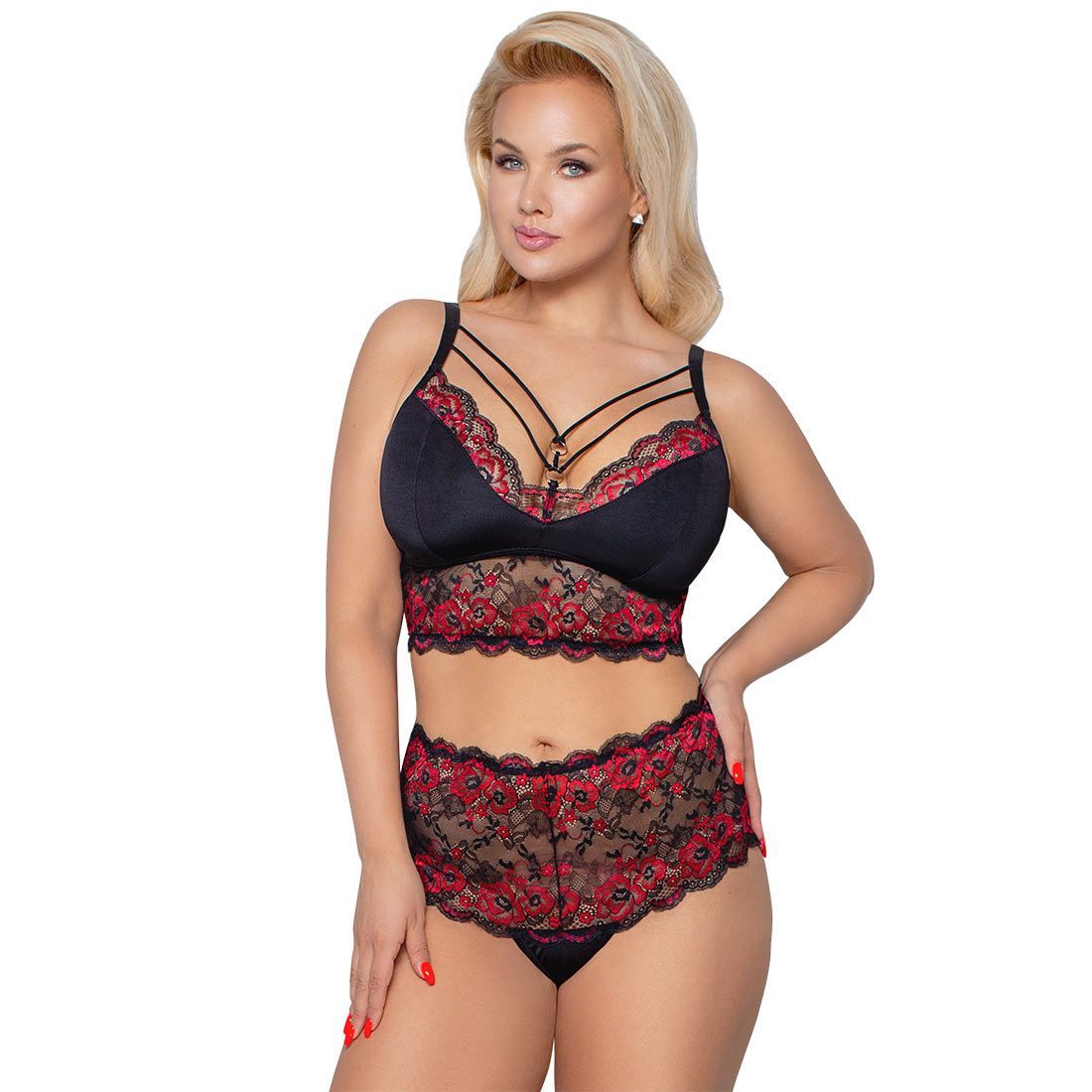 Queen Size Soft BH-Set XL 2XL 3XL 4XL High Waist Spitze schwarz Dessous "Siraba"