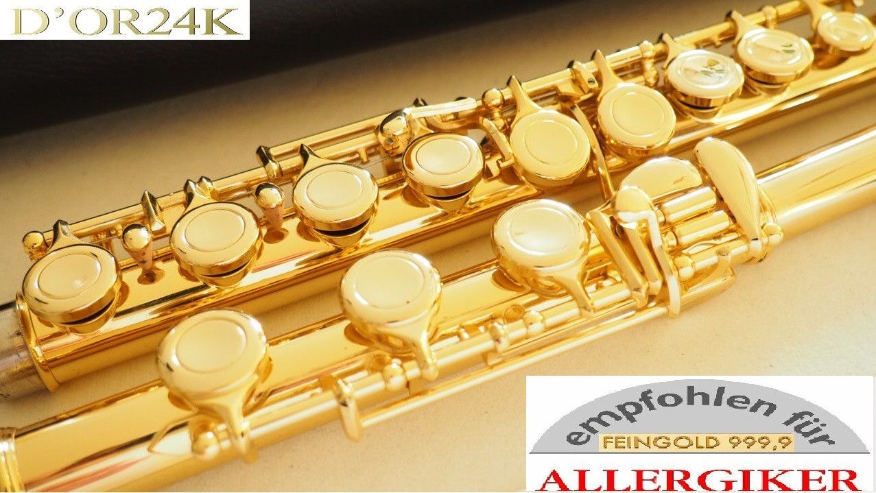 Querflöte Gold 999 24 Karat Allergiefrei H-Fuß, E-Mechanik Zubehör