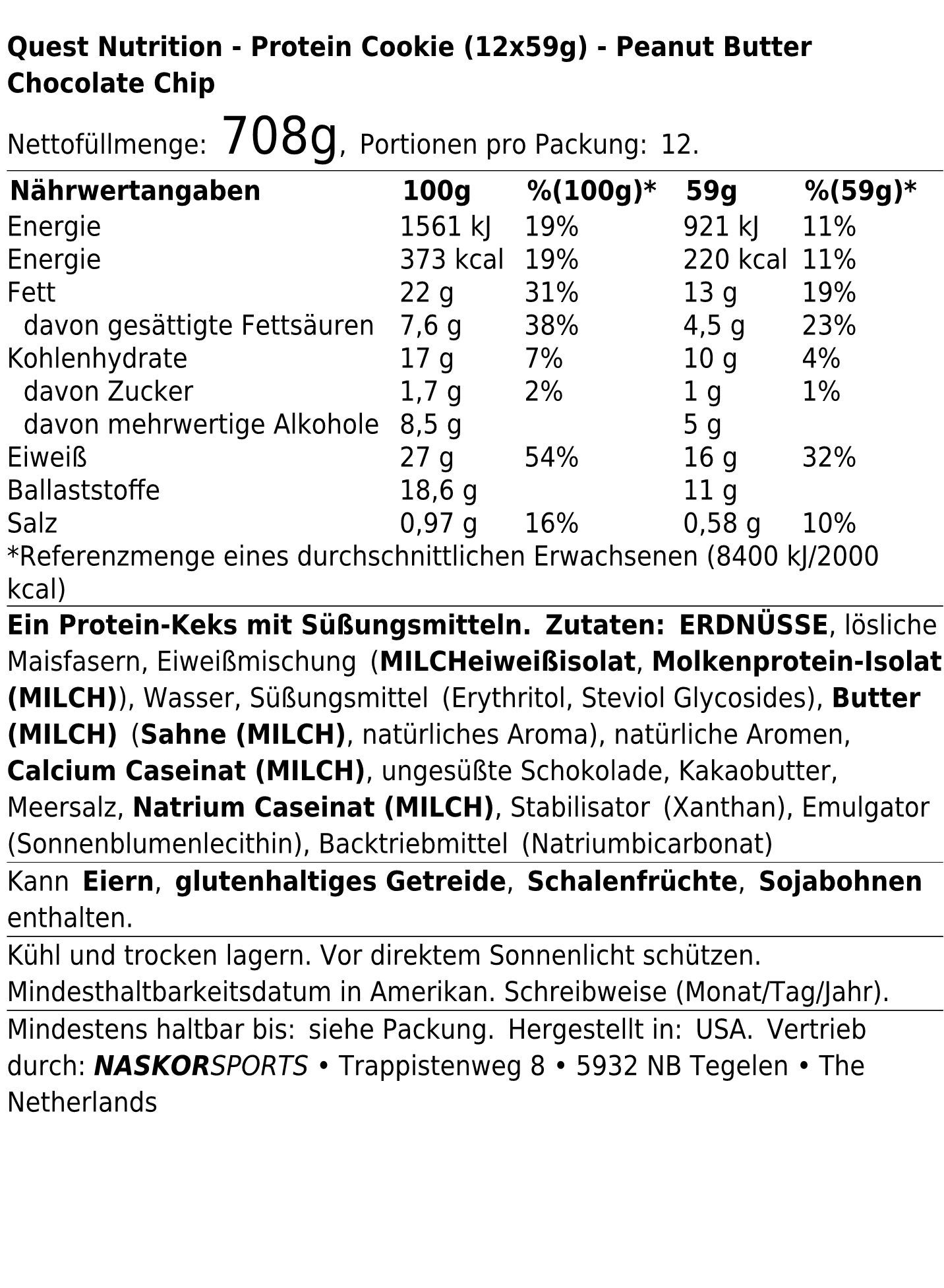 Quest Nutrition Protein Cookie (12x59g) Peanut Butter Chocolate Chip
