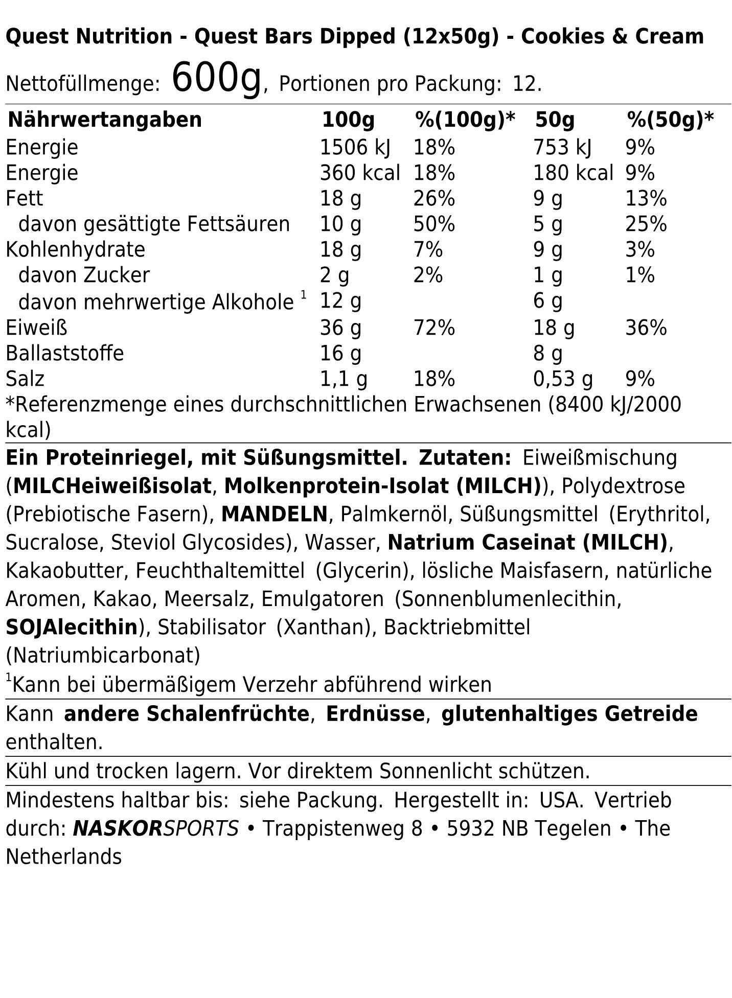 Quest Nutrition Quest Bars Dipped (12x50g) Cookies and Cream