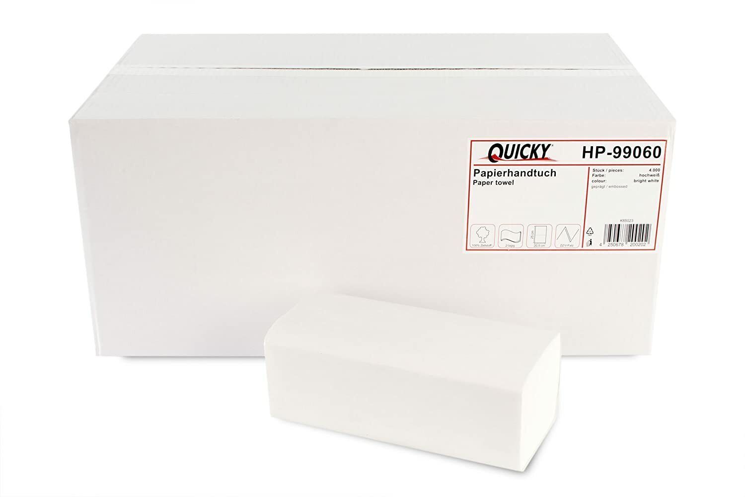 Quicky Papierhandtücher, Maße nach Wahl, ZZ-Falz, 2-lg, hochweiß, 4000 Blatt