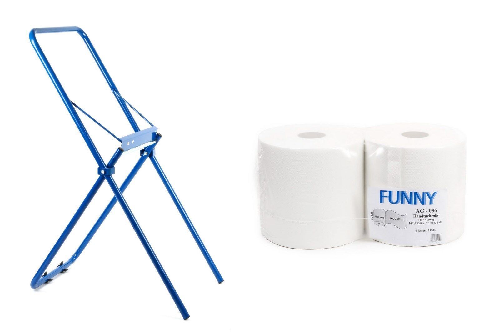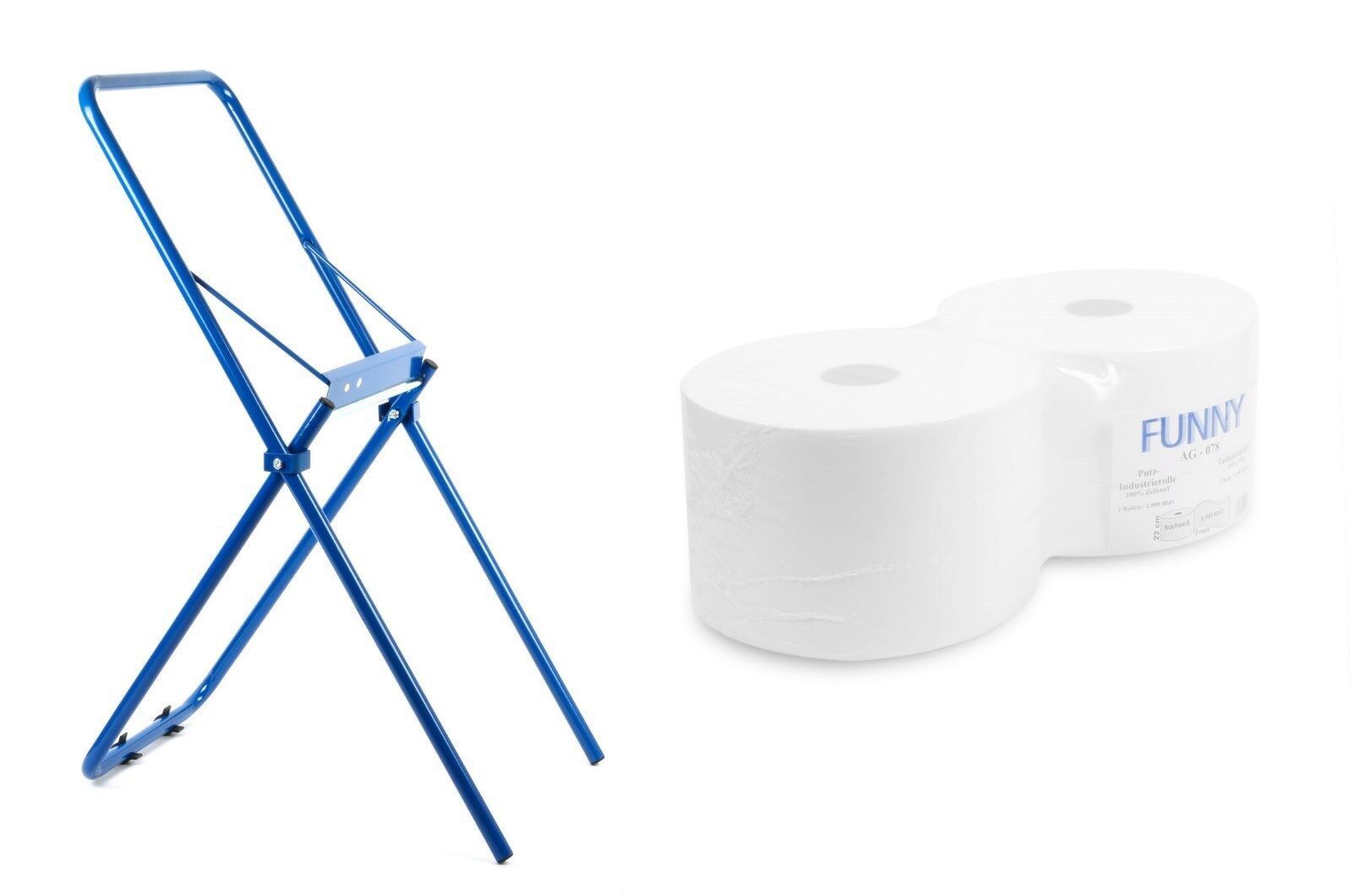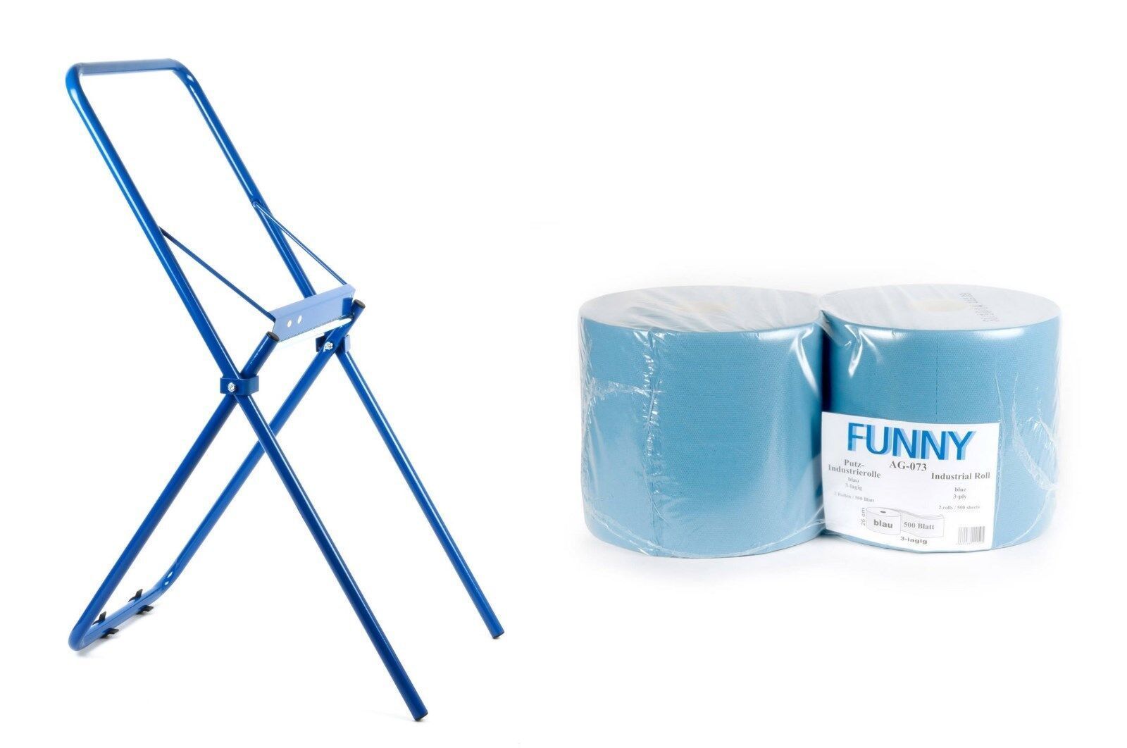 Ein praktisches Abrollgerätfür Putzpapierrollen bis 30 cm Breite. Durch die gezackte Abreißschiene ist eine einfache Dosierung des Putzpapiers möglich. Der Austausch der Putztuchrollen ist ebenfalls schnell und einfach durchzuführen. Der Bodenständerin der Farbe blau kann ganz einfach überall dort a