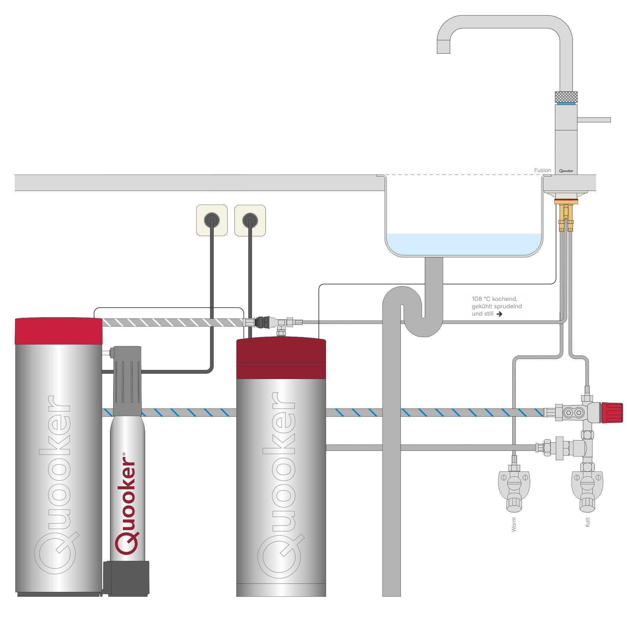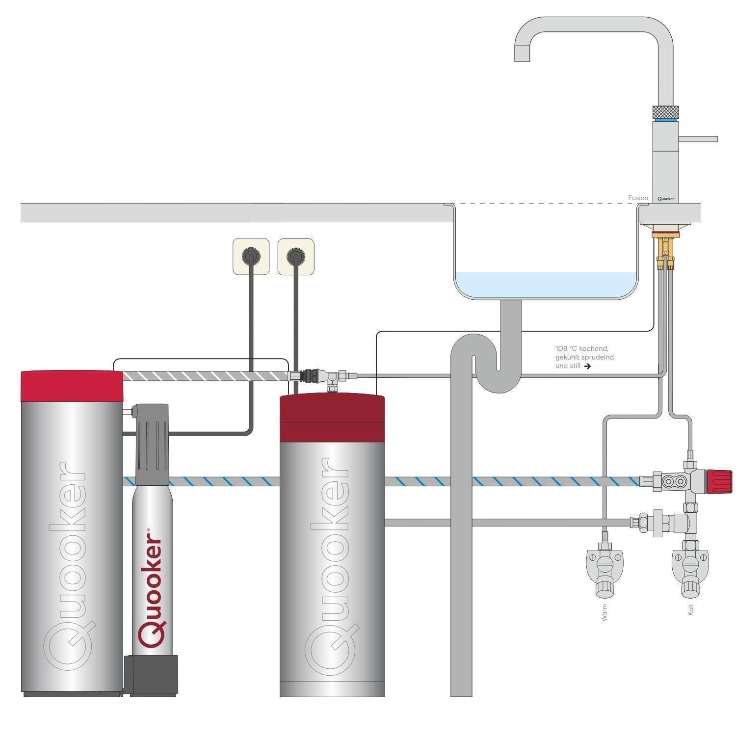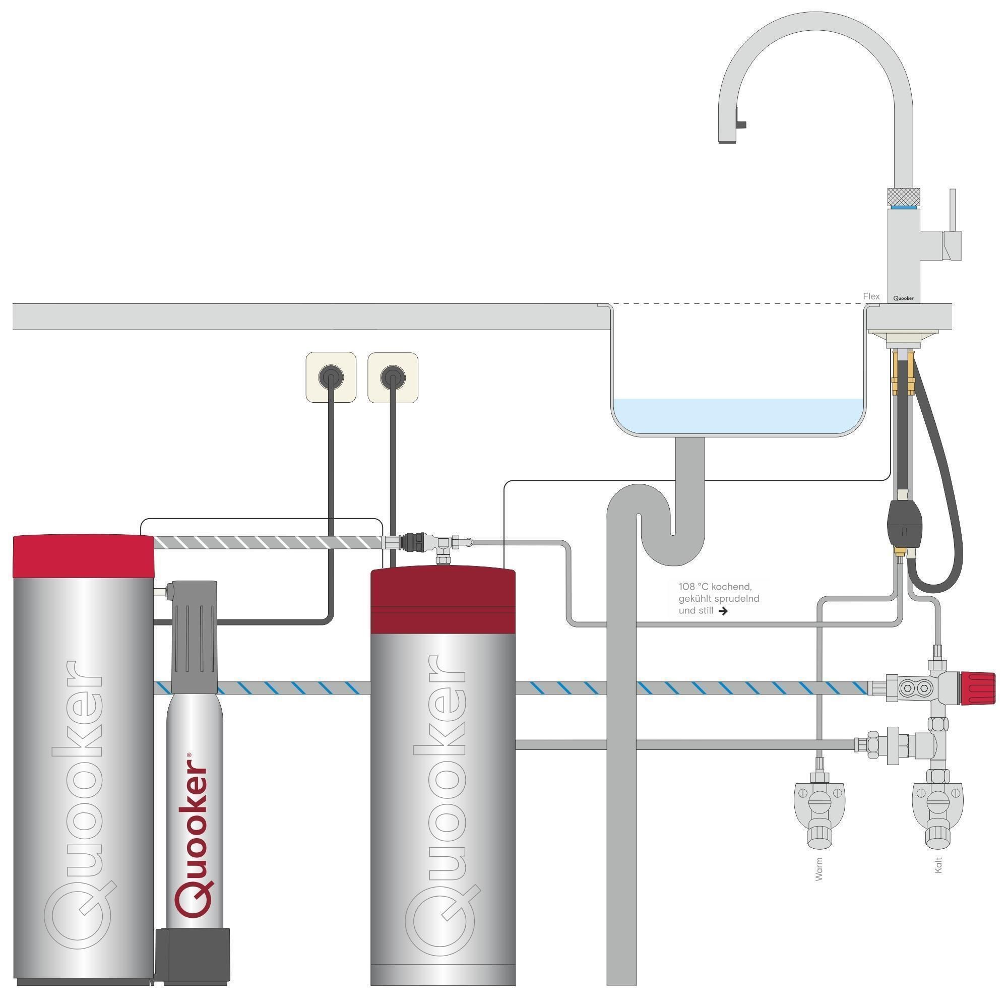 Quooker Wasserhahn mit PRO3 Heißwasser Reservoire & Sprudelwasser CUBE & Filter