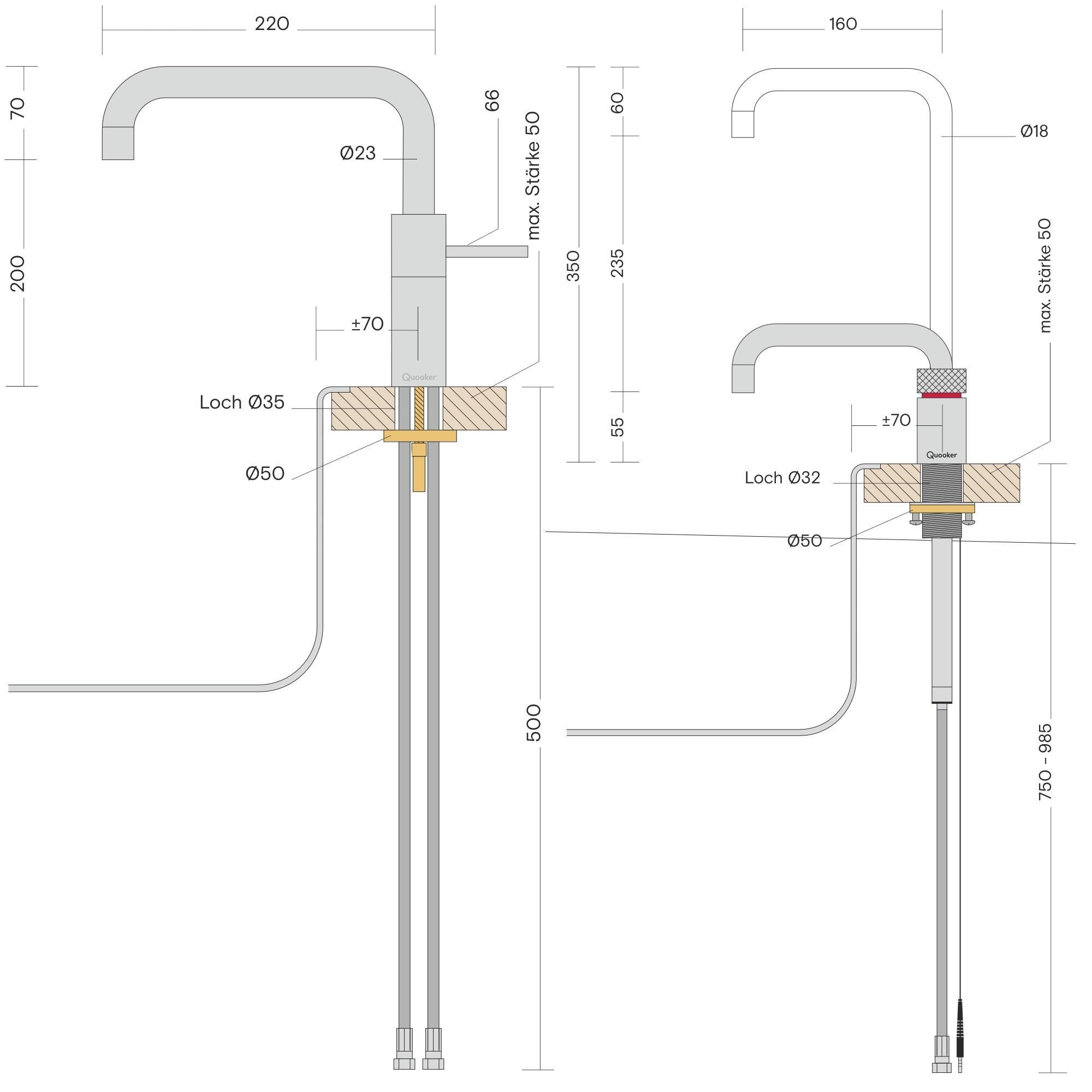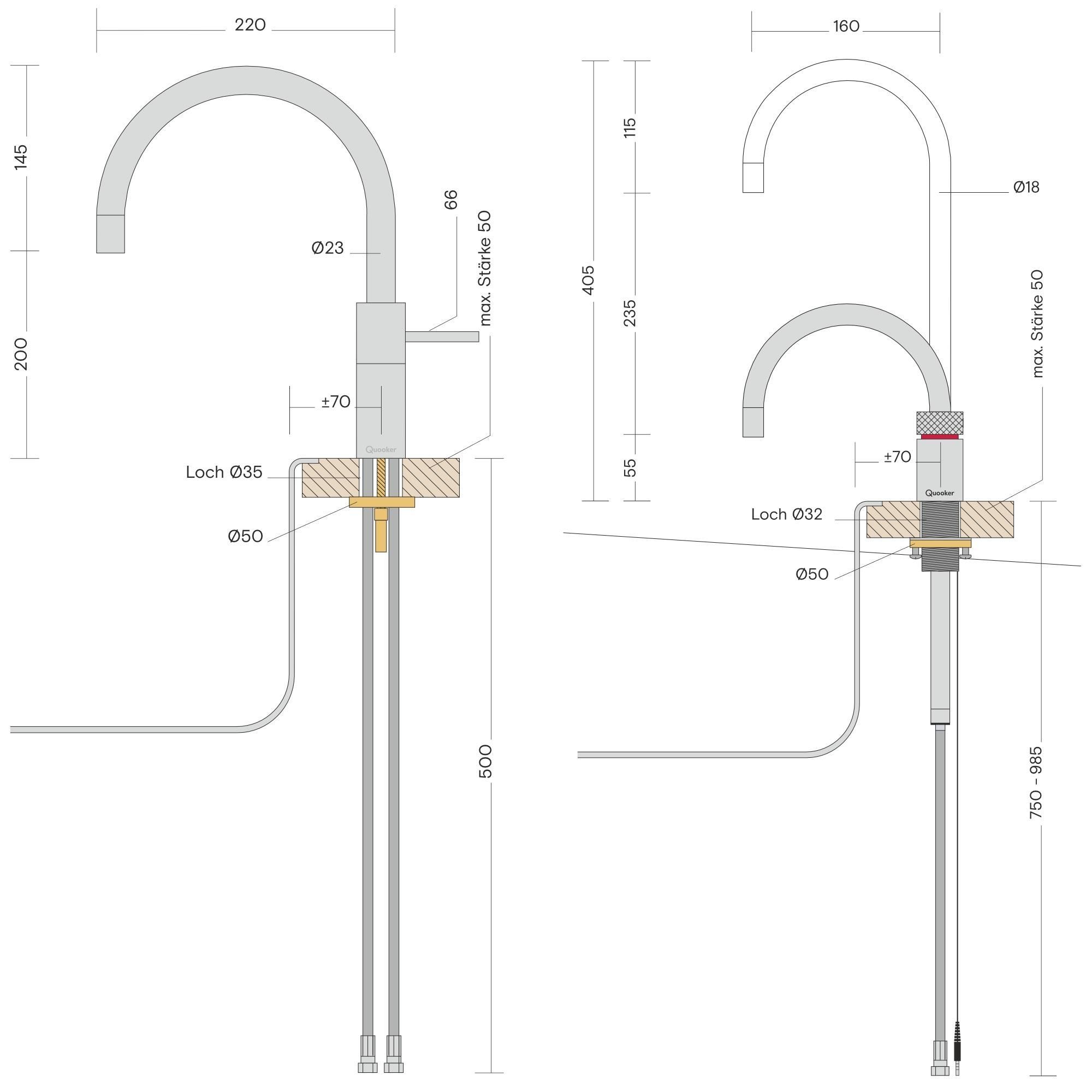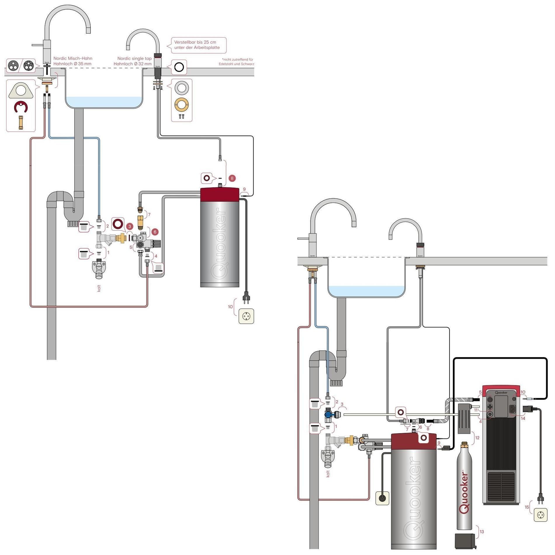 Quooker Wasserhahn mit PRO3 Heißwasser Reservoire & Sprudelwasser CUBE & Filter