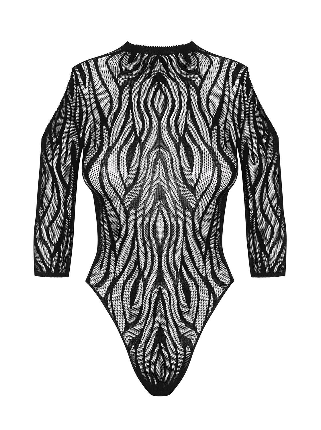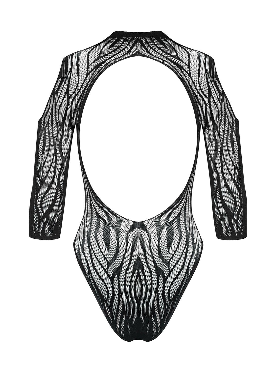 Rückenfreier Body Schwarz Dessous Einteiler mit tollem Muster Gr. 2XL/3XL