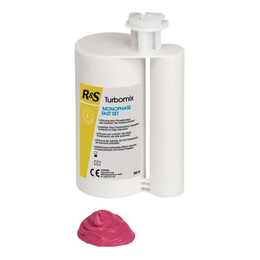 Turbomix R&S ist eine komplette Reihe von Vinylpolysiloxan-Silikonen für automatische Mischer. Norm ISO 4823 ADA19. Hinweise: Die Auswahl von 3 verschiedenen Viskositäten der Tubomix-Silikone ermöglicht ihre Verwendung sowohl in der Doppelmischtechnik als auch in der Wash-Technik.Alle Turbomix s