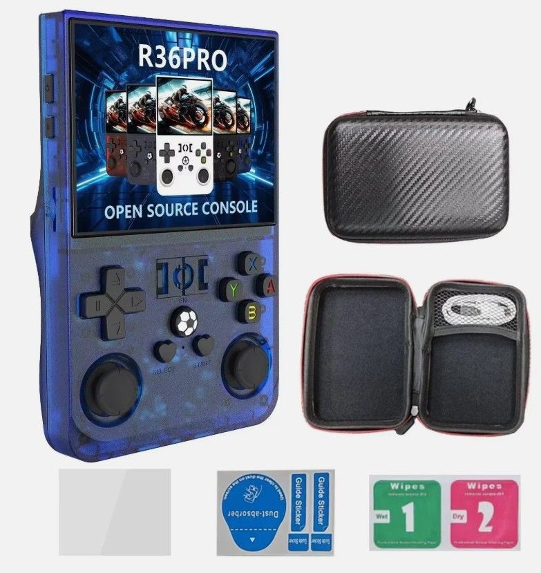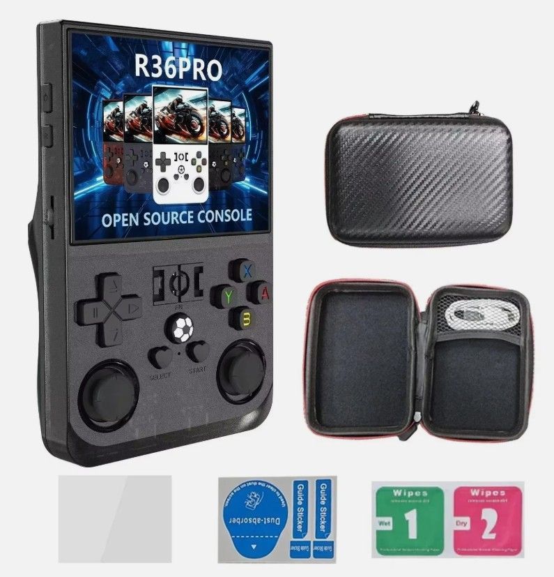 auchen Sie ein in die Welt der klassischen Videospiele mit der R36Pro Handheld-Retro-Spielekonsole. Ausgestattet mit einem 3,5-Zoll-HD-Bildschirm, liefert sie ein beeindruckendes visuelles Erlebnis. Die robuste Konsole verfügt über eine Speicherkapazität von 64 GB, die ausreichend Platz für eine Vie